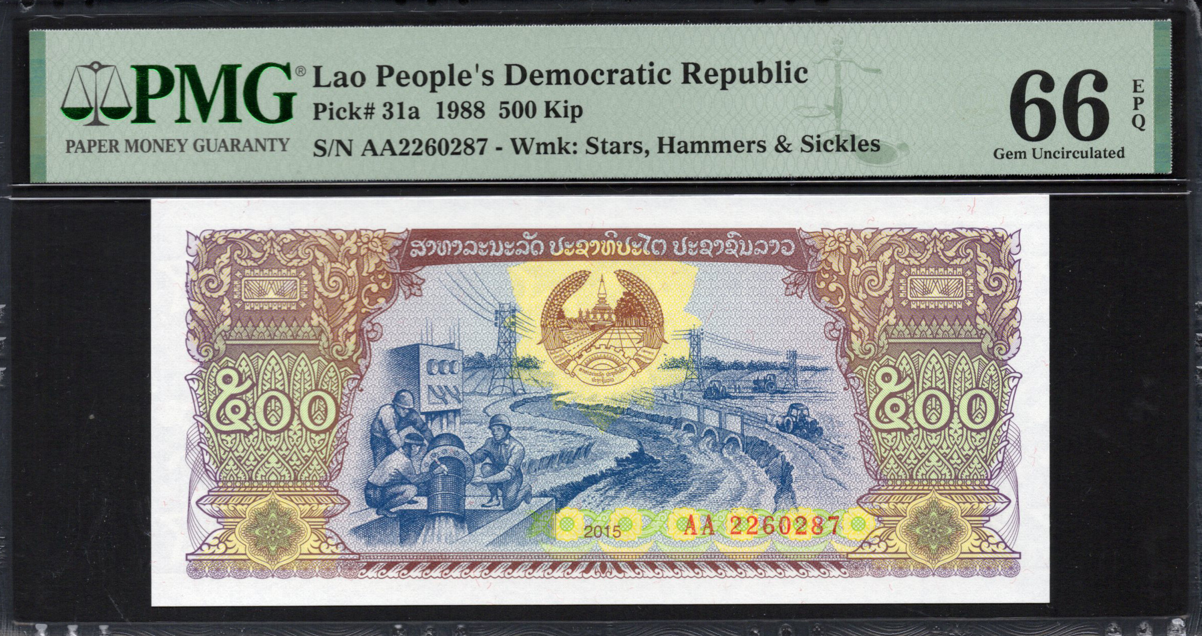 Laos - 500 Kip 1988 - Pick # 31a - PMG 66 EPQ