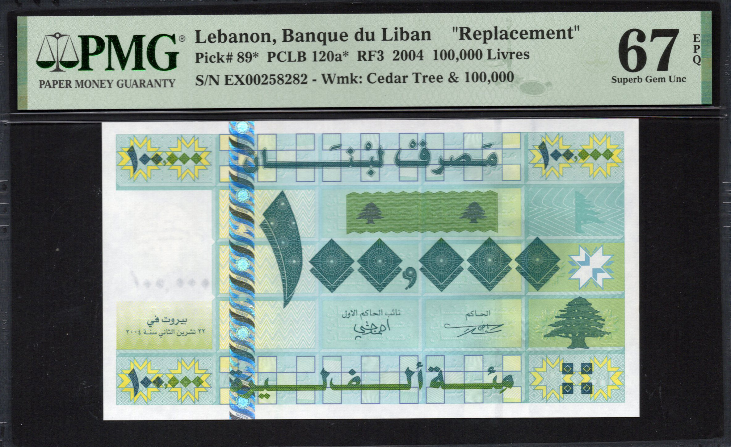 Lebanon - 100.000 Livres 2004 - Pick # 89 - PMG 67 EPQ