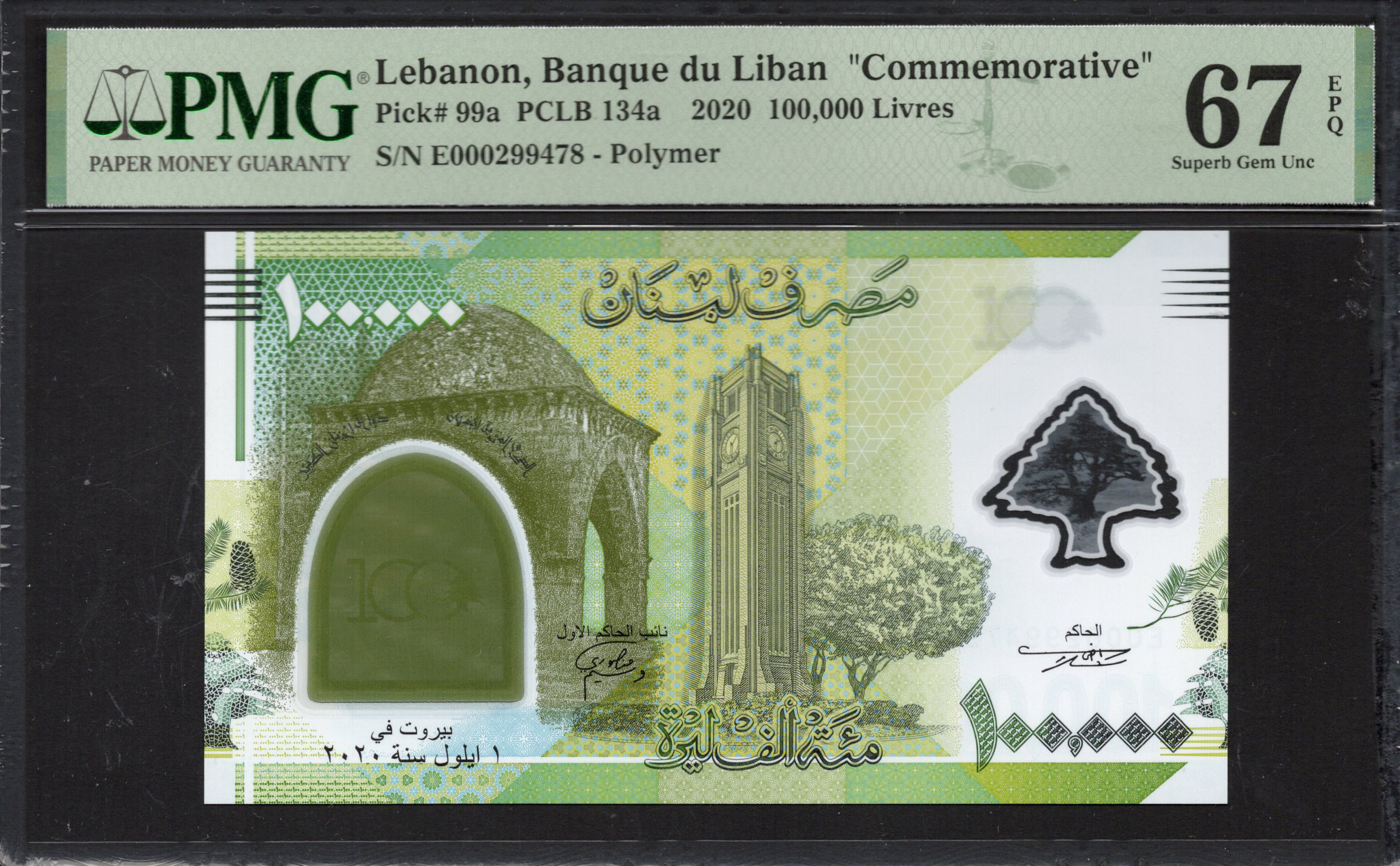 Lebanon - 100.000 Livres 2020 - Pick # 99a - PMG 67 EPQ