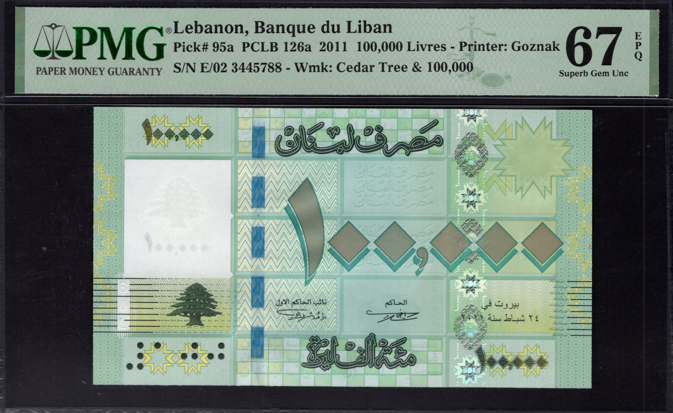 Lebanon - 100.000 Livres 2011 - Pick # 95a - PMG 67 EPQ