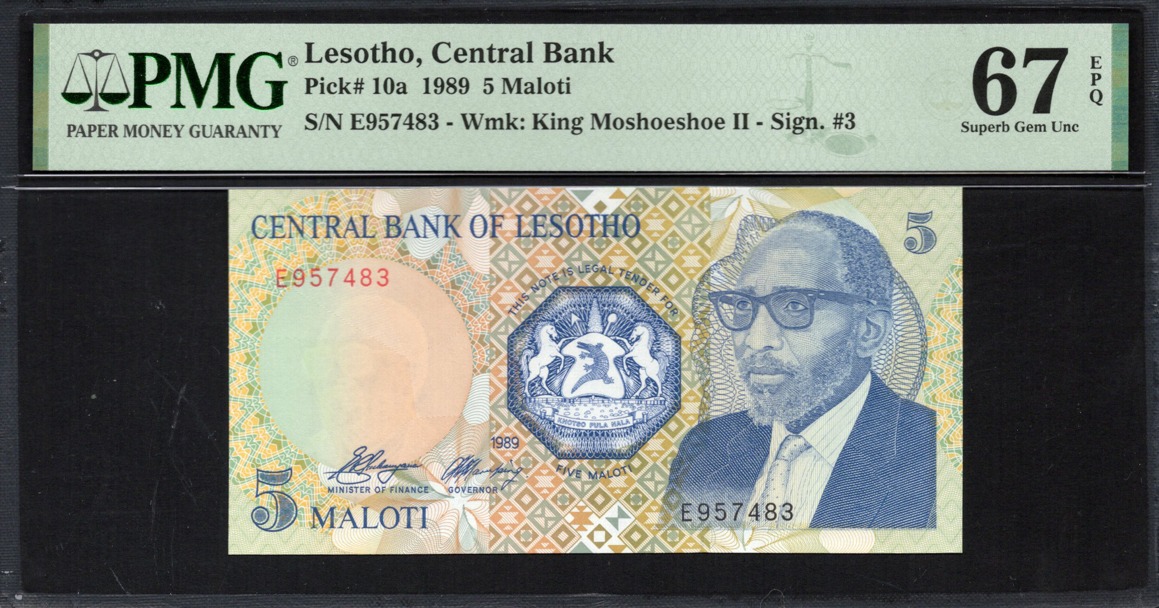 Lesotho - 5 Maloti 1989 - Pick # 10a - PMG 67 EPQ