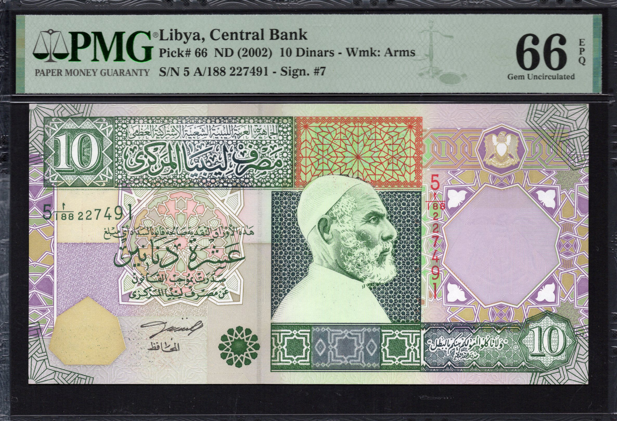 Libya - 10 Dinars 2002 - Pick # 66 - PMG 66 EPQ