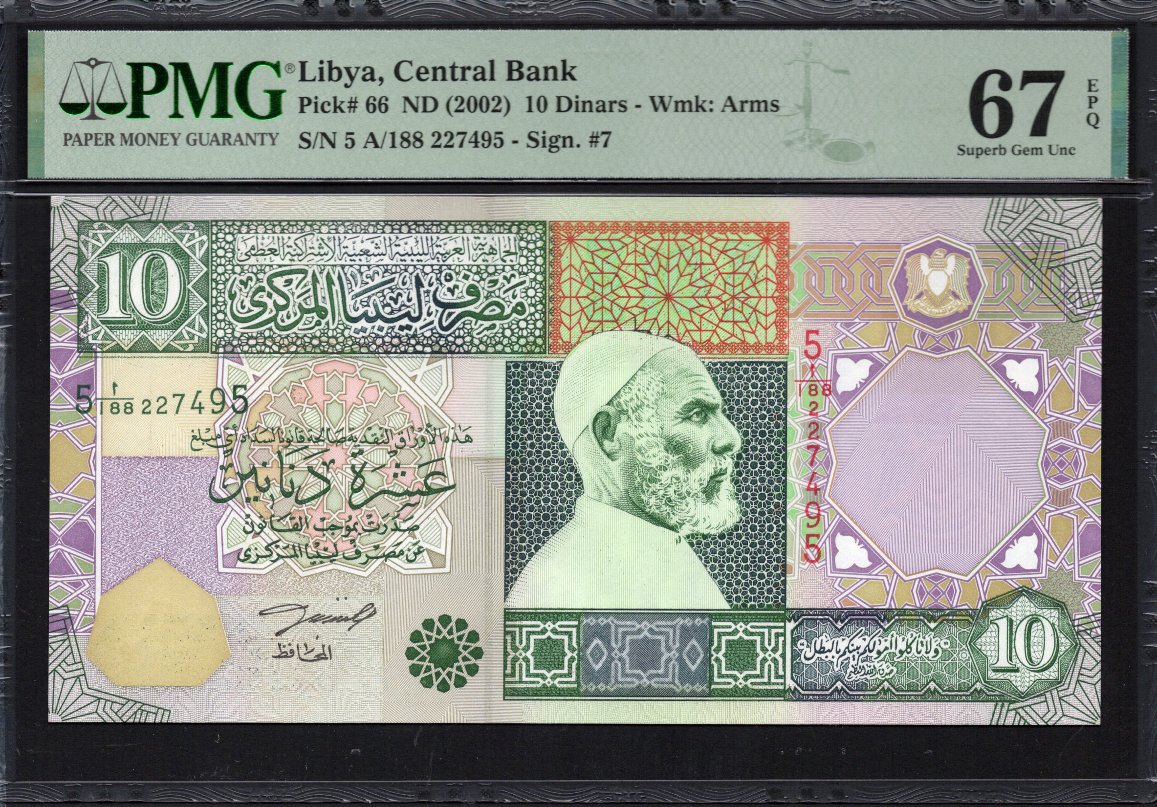 Libya - 10 Dinars 2002 - Pick # 66 - PMG 67 EPQ