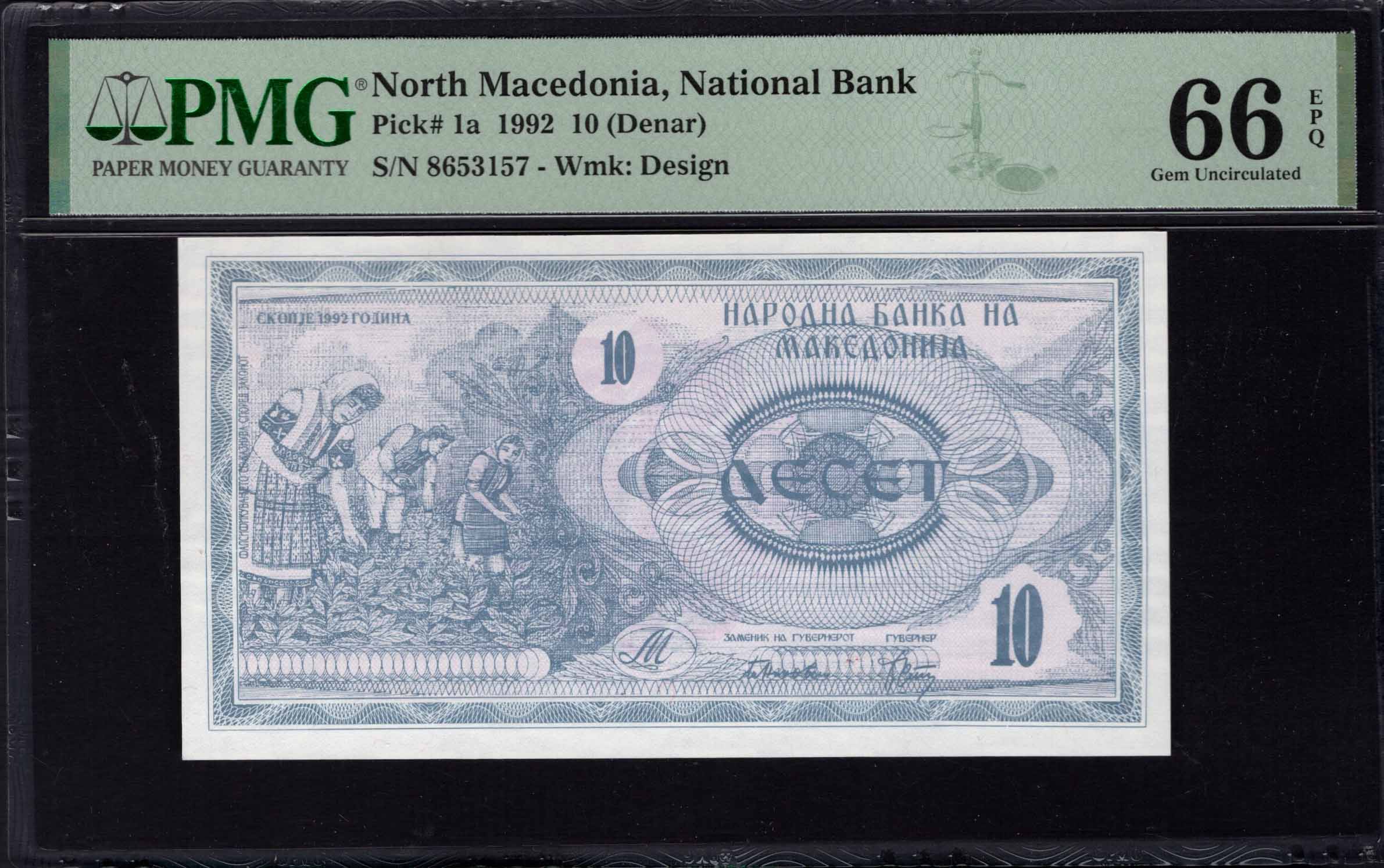 North Macedonia - 10 Denar 1992 - Pick # 1a - PMG 66 EPQ