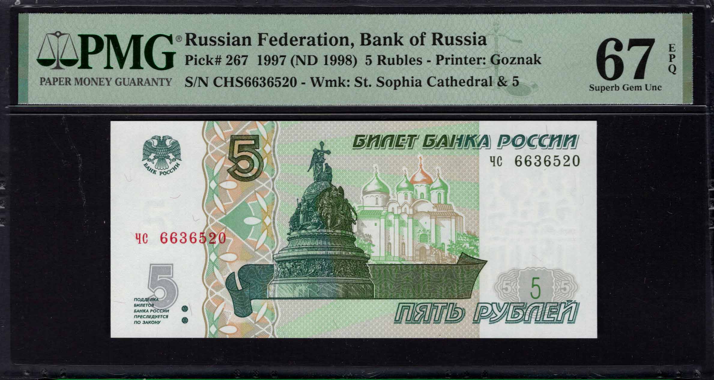 Russia - 5 Rubles 1997 - Pick # 267 - PMG 67 EPQ
