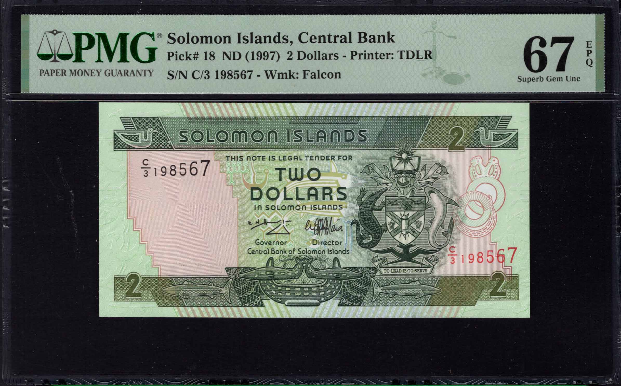Solomon Islands - 2 Dollars 1997 - Pick # 18 - PMG 67 EPQ