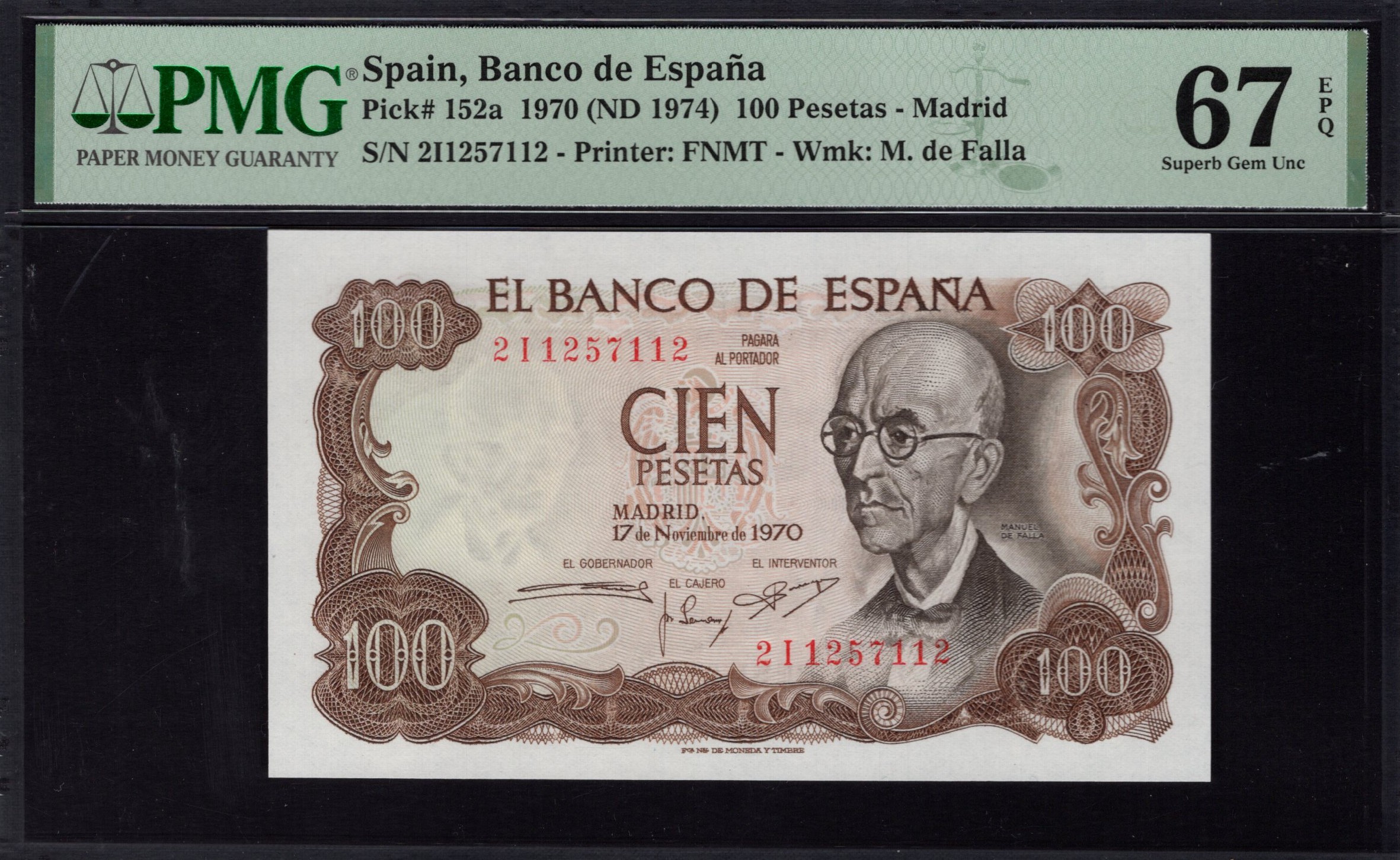 Spain - 100 Pesetas 1970 - Pick # 152a - PMG 67 EPQ