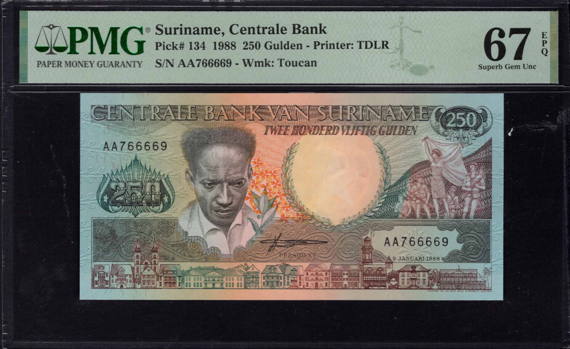 Suriname - 250 Gulden 1988 - Pick # 134 - PMG 67 EPQ