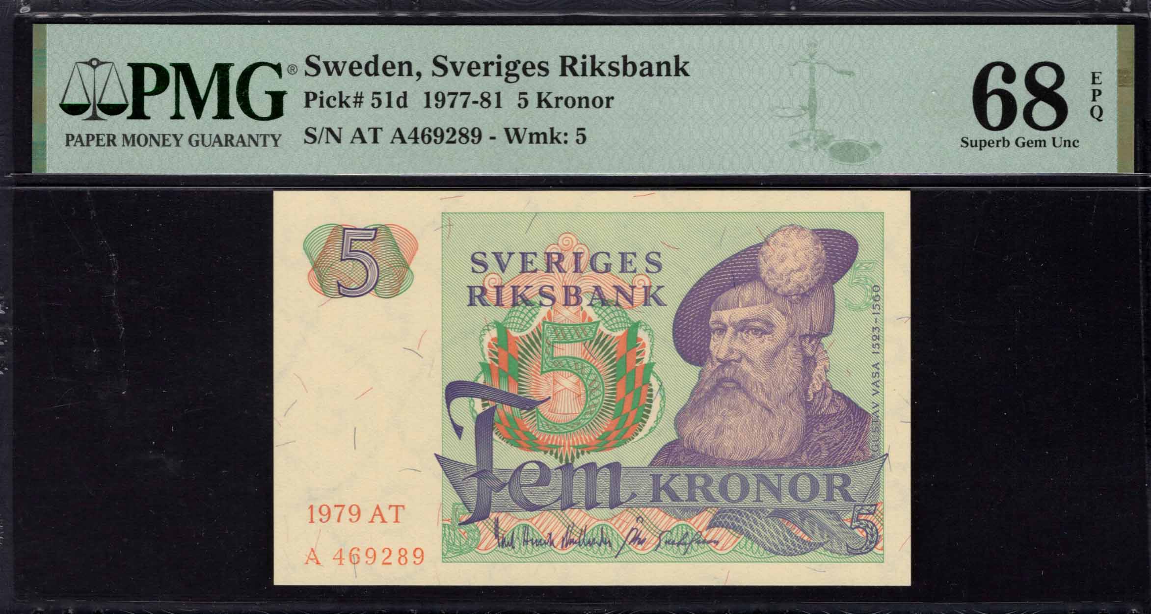 Sweden - 5 Kronor 1977 - Pick # 51d - PMG 68 EPQ