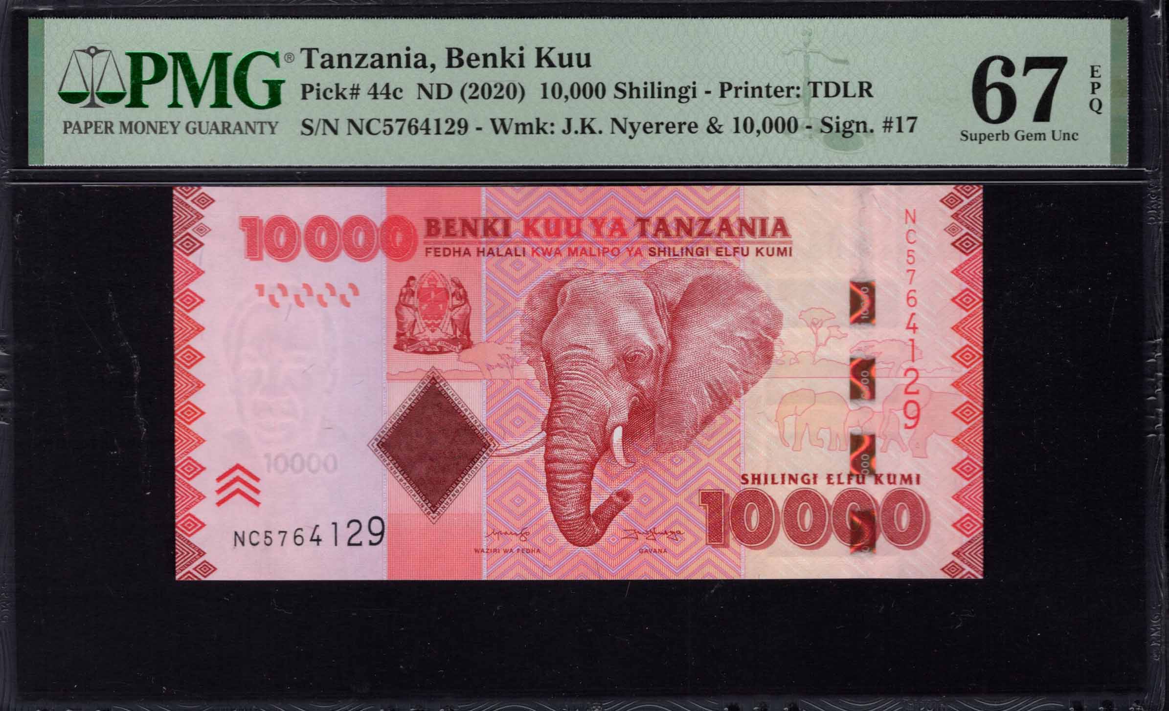Tanzania - 10.000 Shilingi 2020 - Pick # 44c - PMG 67 EPQ