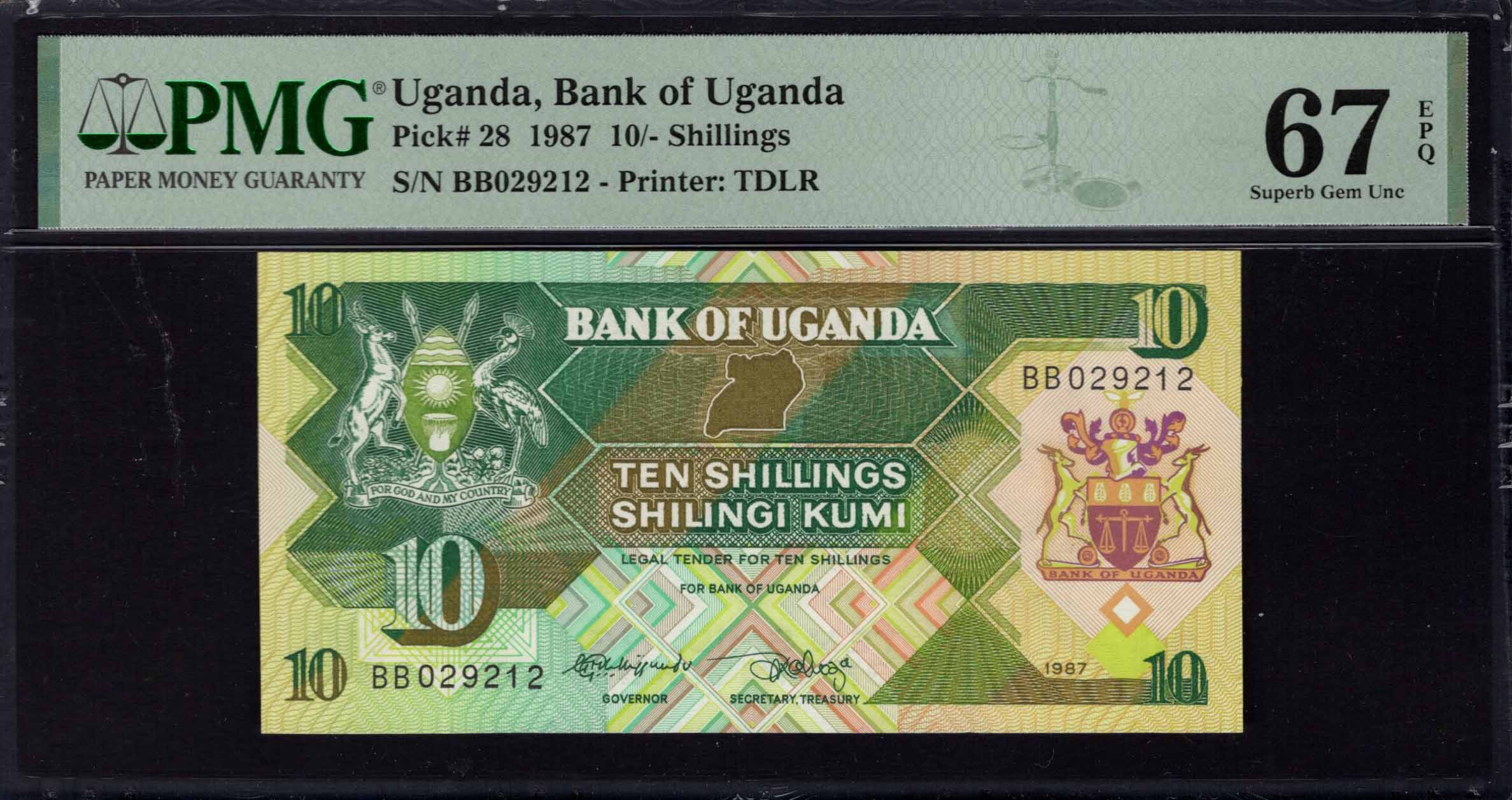 Uganda - 10 Shillings 1987 - Pick # 28 - PMG 67 EPQ