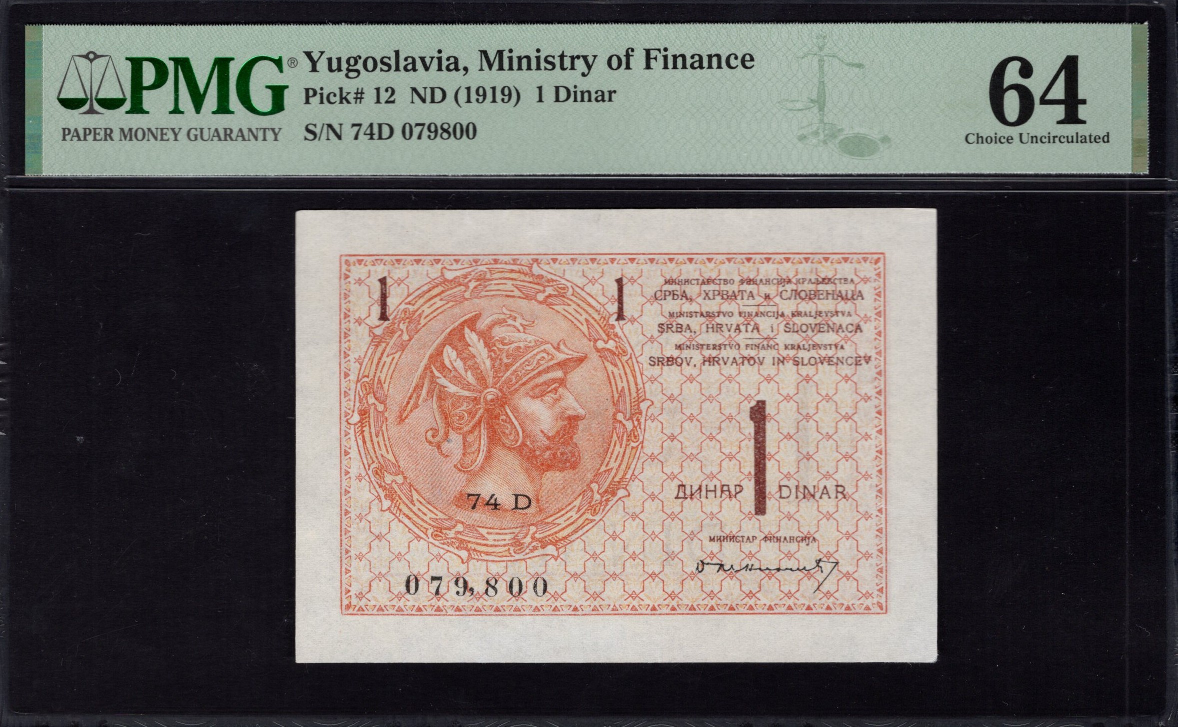 Yugoslavia - 1 Dinar 1919 - Pick # 12 - PMG 64