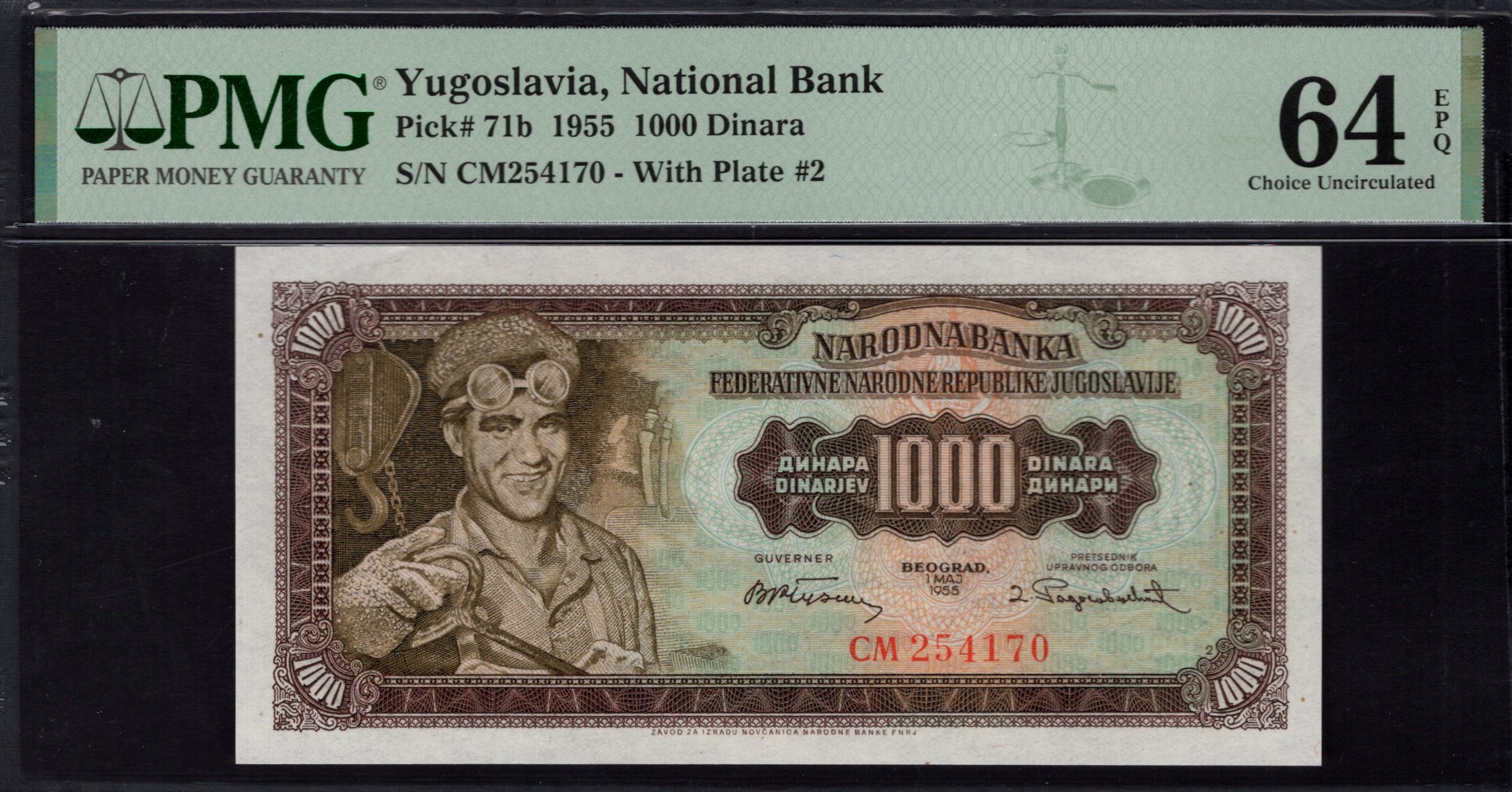Yugoslavia - 1000 Dinara 1955 - Pick # 71b - PMG 64 EPQ