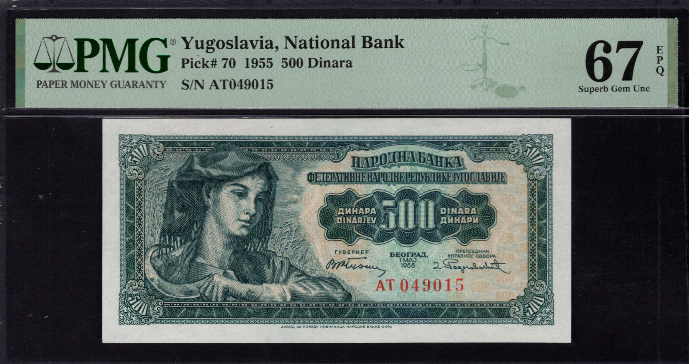 Yugoslavia - 500 Dinara 1955 - Pick # 70 - PMG 67 EPQ