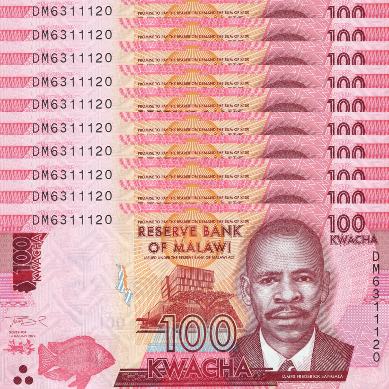 Malawi - 100 Kwacha 2024 - Pick # NEW - Set 10 PCS