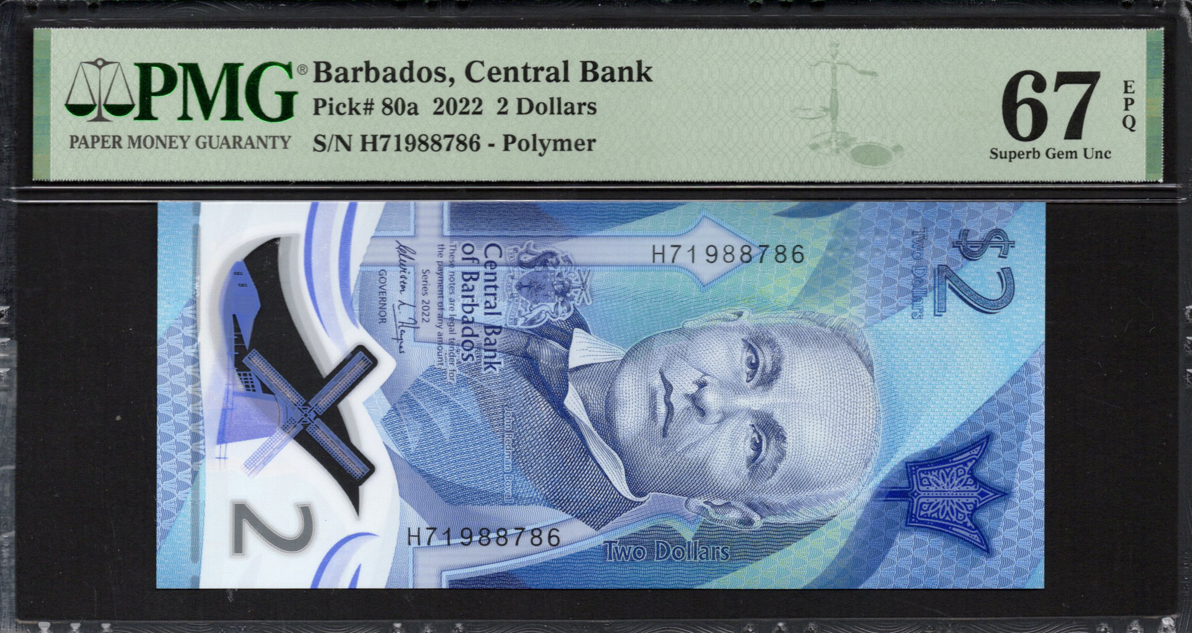 Barbados - 2 Dollars 2022 - Pick # 80a - PMG 67 EPQ