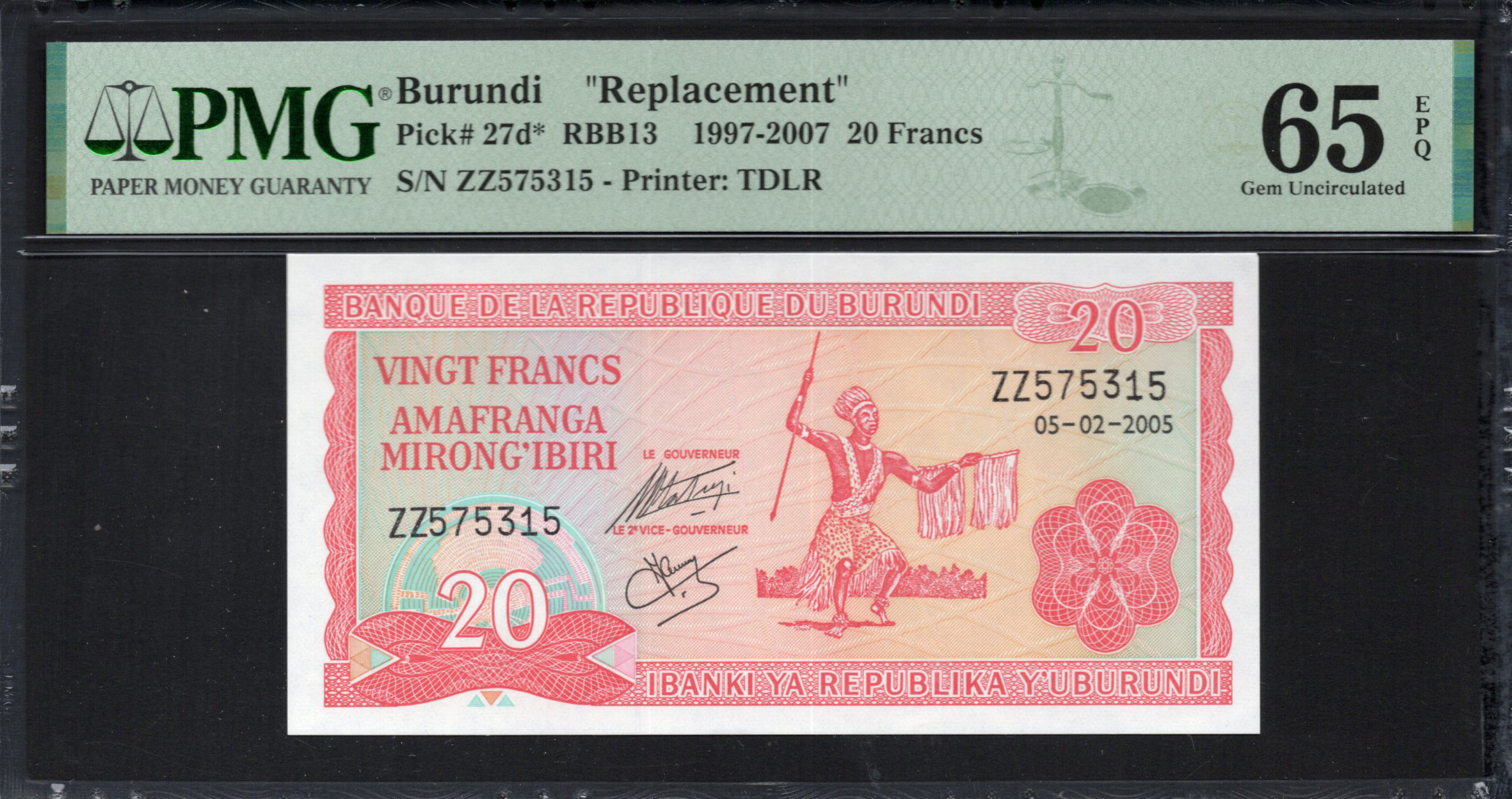 Burundi - 20 Francs 1997 - Pick # 27d - PMG 65 EPQ