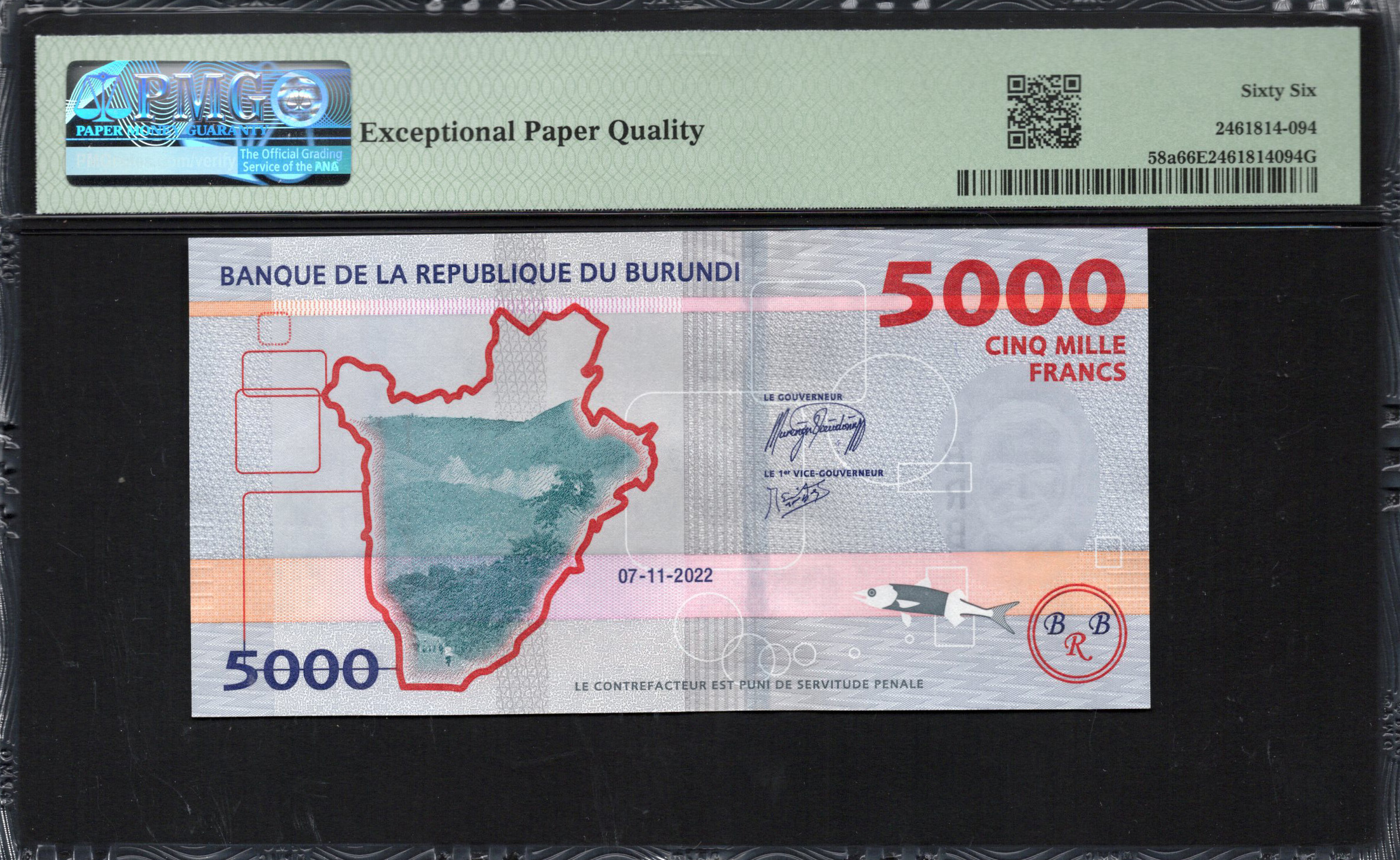 Ce billet de 5000 Francs du Burundi présente des designs complexes et des symboles culturels importants.