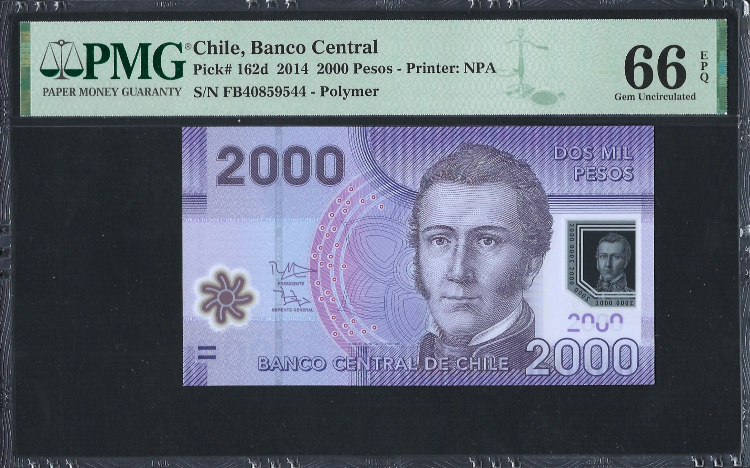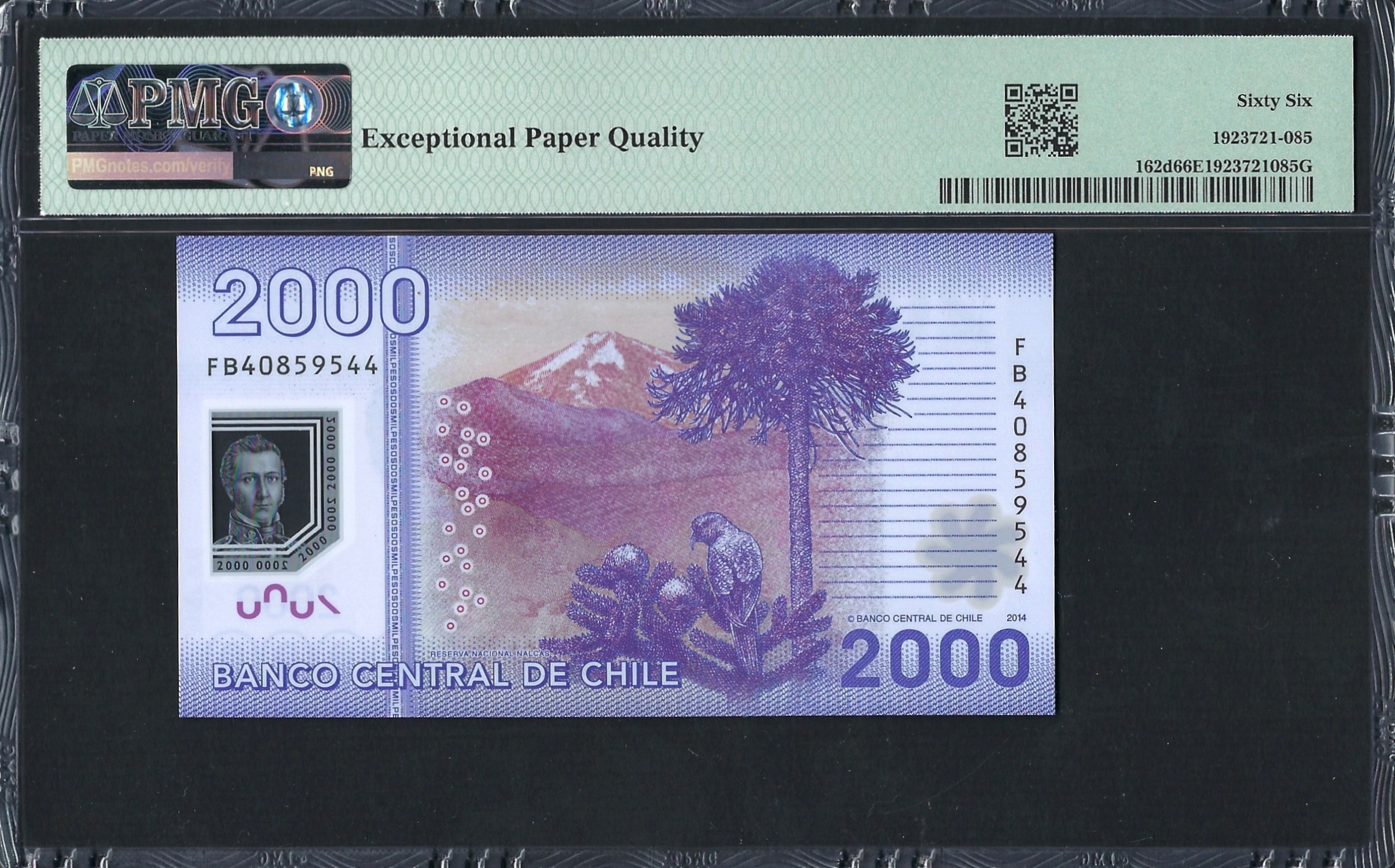 Chile - 2000 Pesos 2014 - Pick # 162d - PMG 66 EPQ