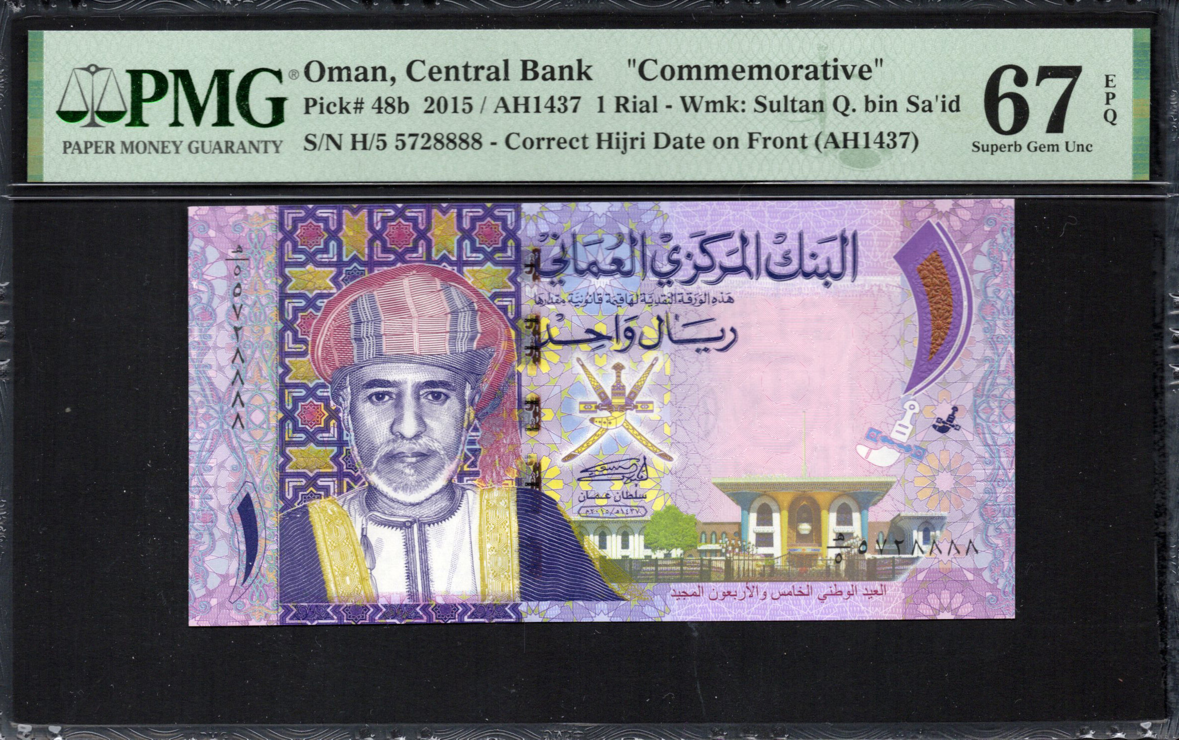 Le billet commémoratif de 1 Rial d'Oman présente un design vibrant qui reflète la riche héritage culturel du pays. Le recto met en avant le portrait du Sultan Qaboos bin Said, entouré de motifs complexes et de couleurs qui renforcent l'attrait visuel. Des éléments tels que le filigrane et la micro-impression attestent de son authenticité, tandis que l'incorporation de motifs traditionnels représente l'importance historique d'Oman. Le verso du billet souligne des points de repère et des symboles importants, illustrant la beauté architecturale et l'identité nationale d'Oman. Avec ses caractéristiques de sécurité modernes et son design artistique, ce billet sert non seulement de monnaie, mais également d'objet de collection reflétant l'identité d'Oman.