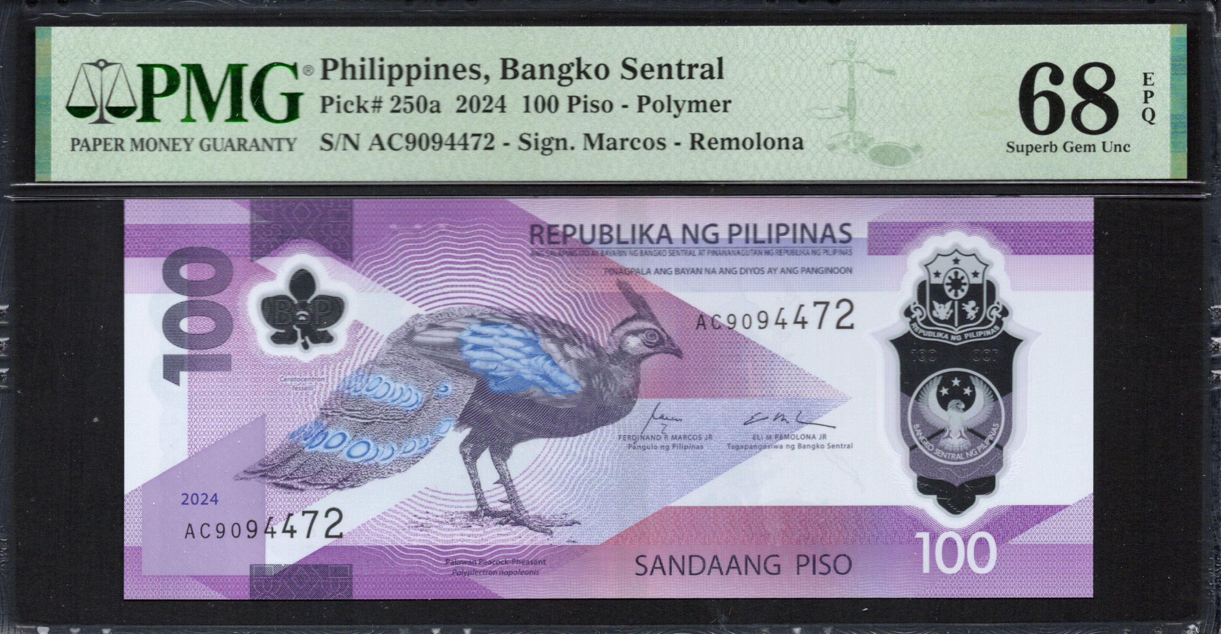 Philippines - 100 Piso 2024 - Pick # 250a - PMG 68 EPQ
