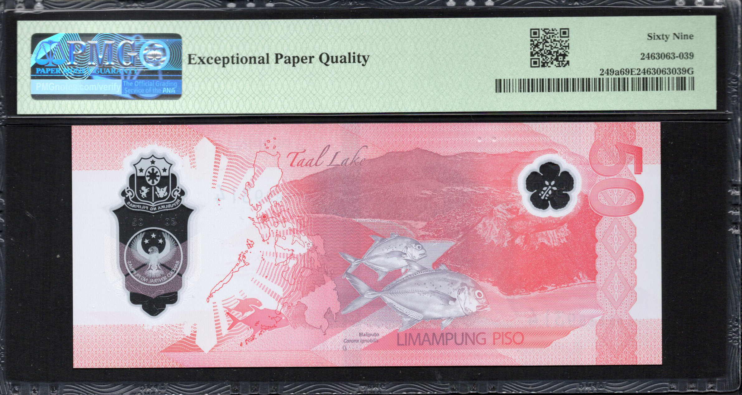Le billet de 50 Piso des Philippines, émis en 2025 par la Bangko Sentral, présente des caractéristiques artistiques et de sécurité uniques qui sont répandues dans le design moderne des billets. Fabriqué en polymère, ce billet arbore des couleurs vives et un design distinctif qui reflète la culture et le patrimoine philippins. Le chat léopard, présent sur le billet, illustre la riche biodiversité du pays, tandis que l'intégration de caractéristiques de sécurité telles que les filigranes et la microimpression renforce son intégrité contre la contrefaçon. Les couleurs vives, incluant des nuances de rouge et d'orange, contribuent à l'attrait esthétique tout en ajoutant à la fonction du design, faisant de ce billet une pièce remarquable de monnaie.