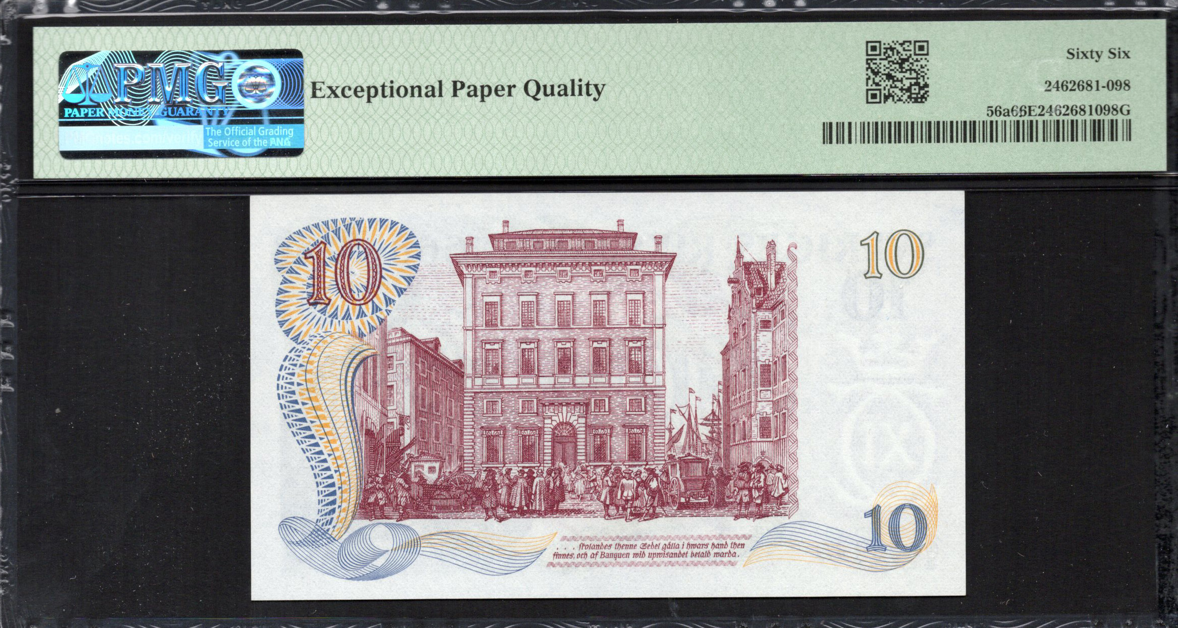 Au revers, le billet présente une figure historique importante entourée de designs ornementaux luxuriants. La représentation artistique dégage un sentiment de majesté, encadrée par des illustrations détaillées de la flore et de la faune, faisant allusion à la riche héritage naturel de la Suède. L’année '1668-1968' souligne la longue histoire de la banque, tandis que l’arrière-plan incorpore des microscriptures et des motifs qui renforcent les éléments de sécurité du billet. Dans l'ensemble, le revers complète l'avers, ajoutant de la profondeur à la narration du billet.