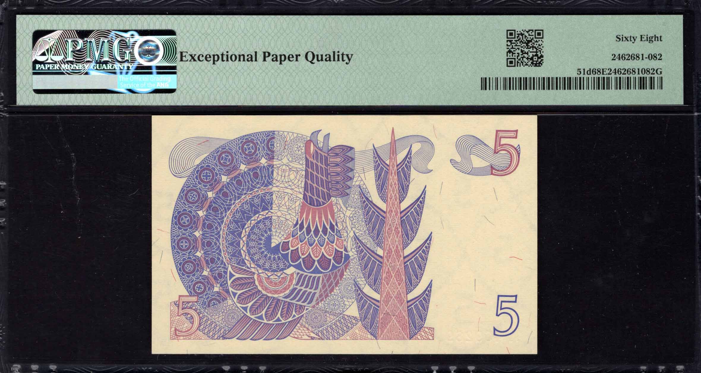 Au verso du billet de 5 Kronor, le design continue de représenter un mélange d'éléments artistiques et fonctionnels. Il inclut des motifs de fond qui complètent le style du recto, tout en intégrant des attributs de sécurité. Les couleurs utilisées sont harmonieuses avec celles du recto, et l'esthétique générale est conçue pour intriguer et informer. Comme pour le recto, des caractéristiques de sécurité telles que des hologrammes ou du texte réduit peuvent être présentes, ce qui améliore l'intégrité du billet et rend sa contrefaçon difficile.