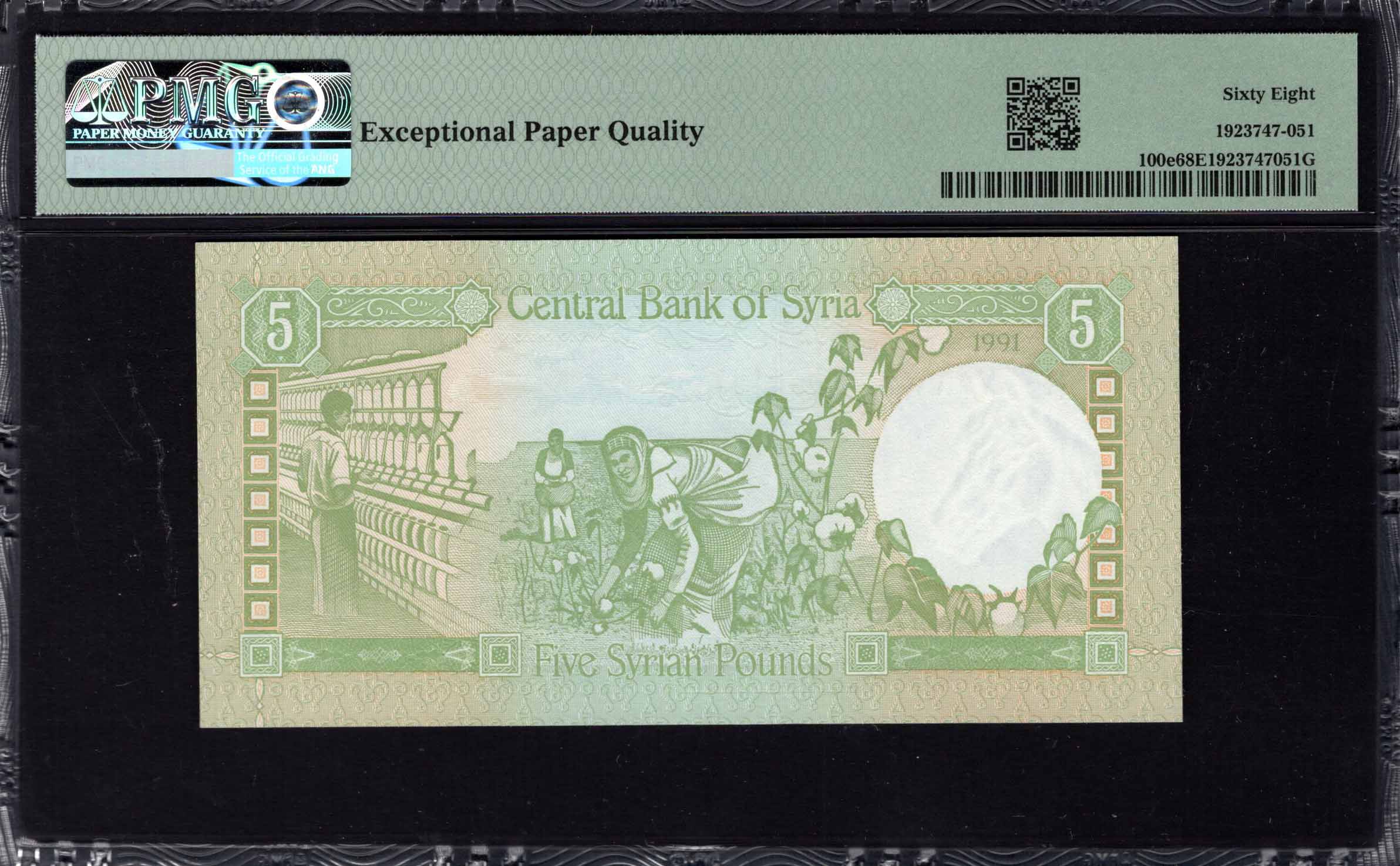 Cette analyse présente les caractéristiques uniques d'un billet de banque de £5 syrien, émis en 1991, riche en éléments artistiques et en caractéristiques de sécurité importantes. Le billet présente une variété de couleurs et des motifs complexes qui reflètent le patrimoine syrien. On y trouve des images de monuments emblématiques et de symboles culturels, qui augmentent non seulement l'attrait esthétique mais racontent aussi une histoire de l'histoire de la nation. La conception soignée du billet, associée à des éléments de sécurité tels que des filigranes et des micro-impressions, garantit son authenticité et décourage les tentatives de contrefaçon. Des motifs intrigants aux références historiques marquantes, ce billet représente la riche tapisserie culturelle de la Syrie.