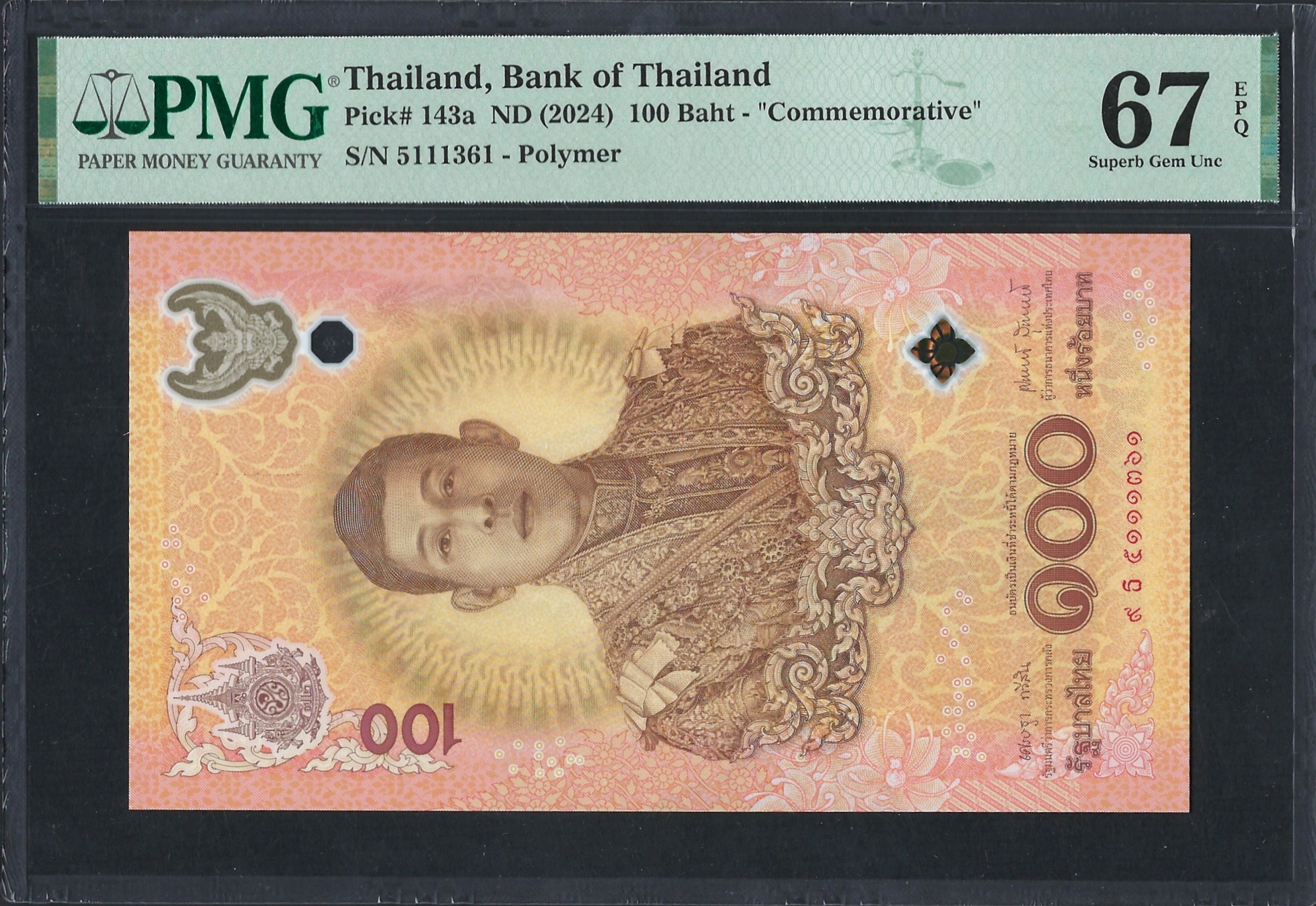 Ce billet de 100 Baht de Thaïlande présente des designs intriqués qui reflètent la riche héritage culturel du pays. Réputé pour son utilisation frappante de la couleur et du détail, le billet arbore l'image d'une figure historique significative. L'arrière-plan met en avant des motifs élaborés et des éléments ornementaux, créant une attrait visuel. De plus, ce billet en polymère comprend plusieurs caractéristiques de sécurité avancées, garantissant son intégrité et son authenticité en circulation. Les couleurs vives et les œuvres d'art détaillées non seulement rehaussent son attrait esthétique mais témoignent également de l'artisanat thaïlandais dans la production de monnaie.