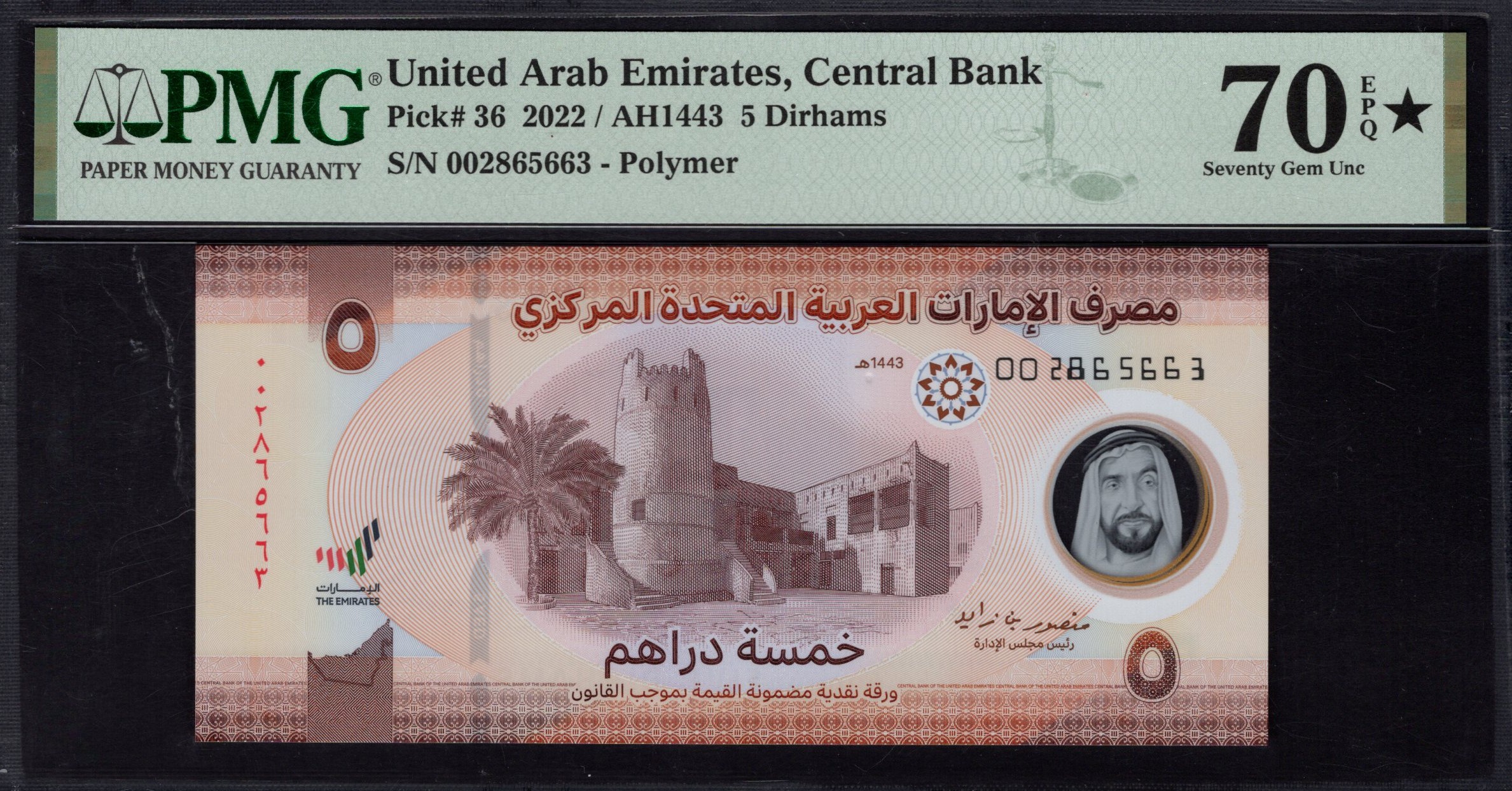 United Arab Emirates - 5 Dirhams 2022 - Pick # 36 - PMG 70 EPQ★