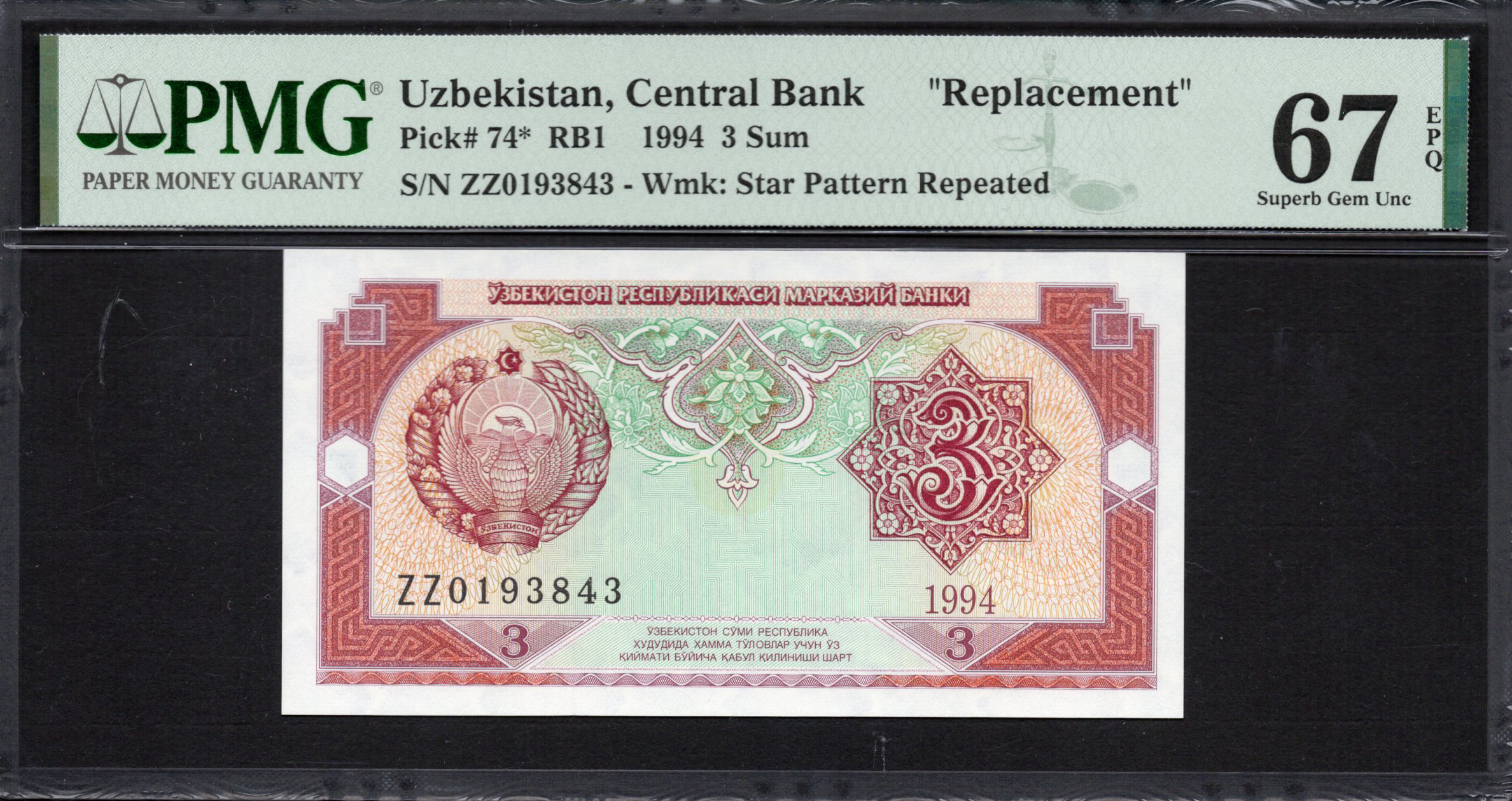 Ce billet de 3 Som d'Ouzbékistan, émis en 1994, présente des éléments artistiques uniques et des caractéristiques de sécurité. Le thème central tourne autour de la symbolique nationale, avec une belle représentation de l'emblème d'État, complétée par des motifs complexes et des couleurs vives. Le billet reflète le patrimoine culturel de l'Ouzbékistan tout en répondant aux normes de sécurité modernes.