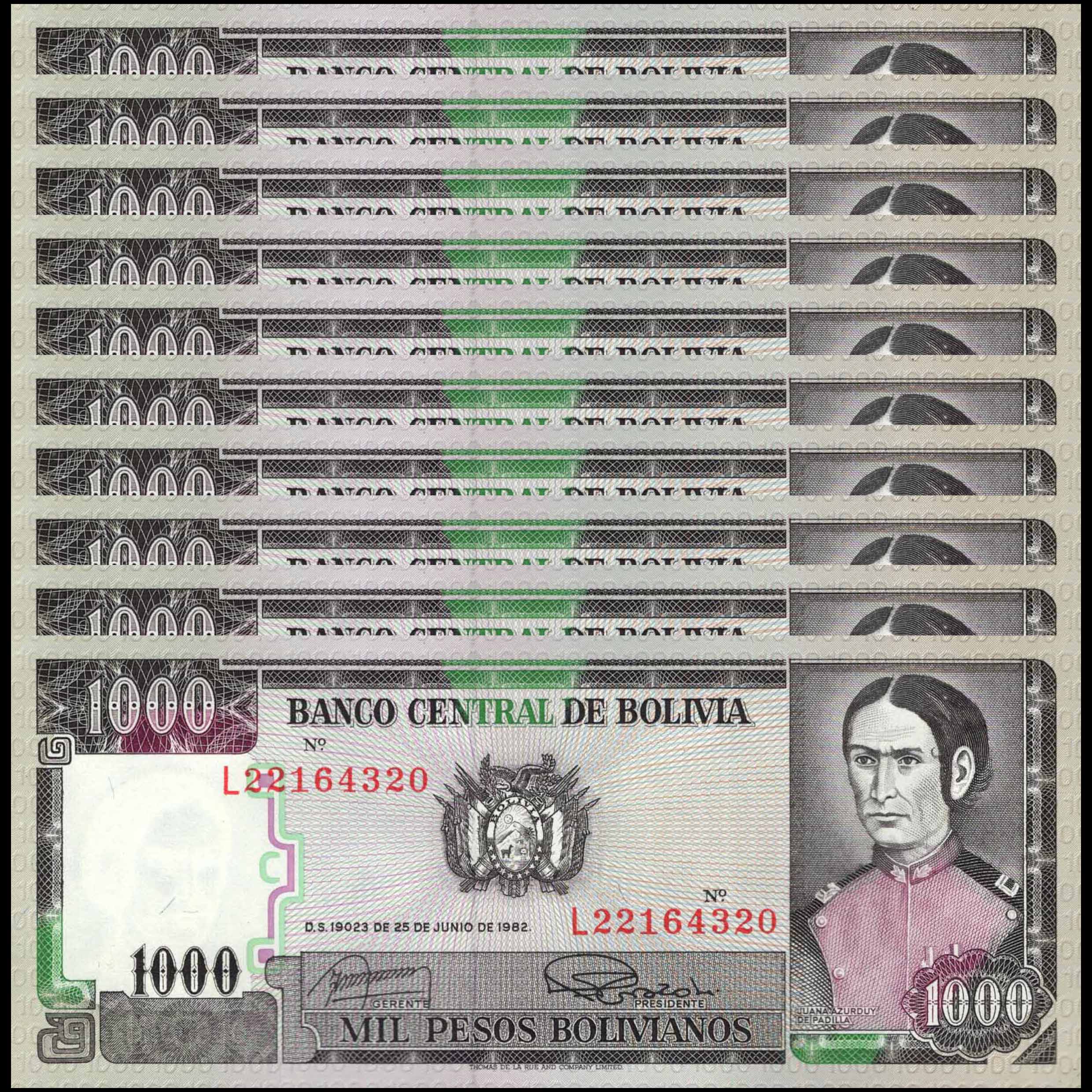 Bolivia - 1000 Bolivianos 1982 - Pick # 167 - Set 10 PCS
