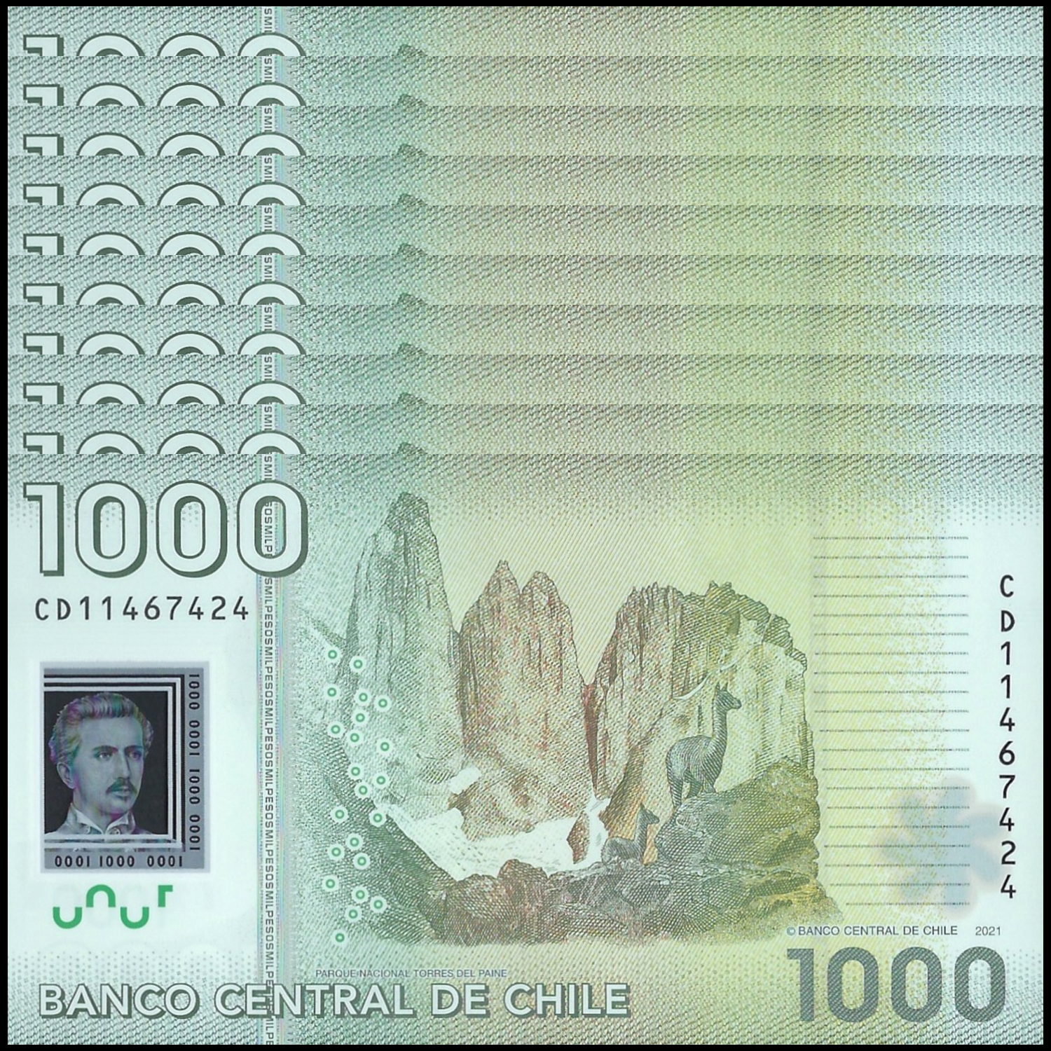 Chile - 1000 Pesos 2021 - Pick # 161k - Set 10 PCS
