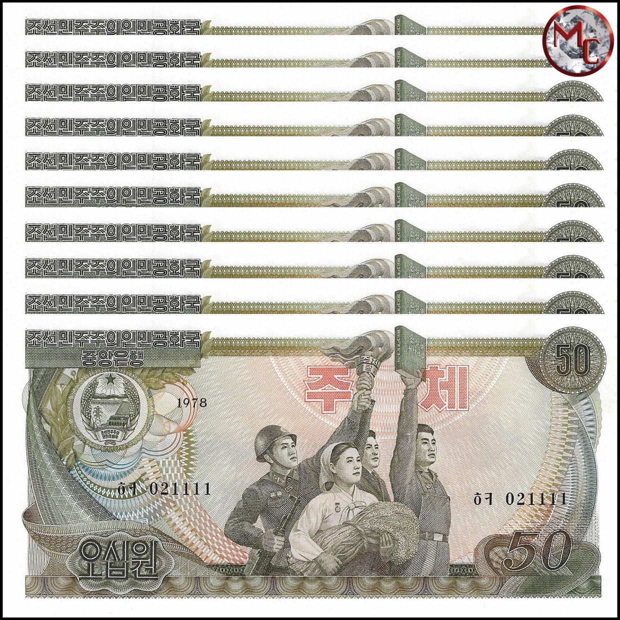 North Korea - 50 Won 1984 - Pick- 21e / B310e - Set 10 PCS