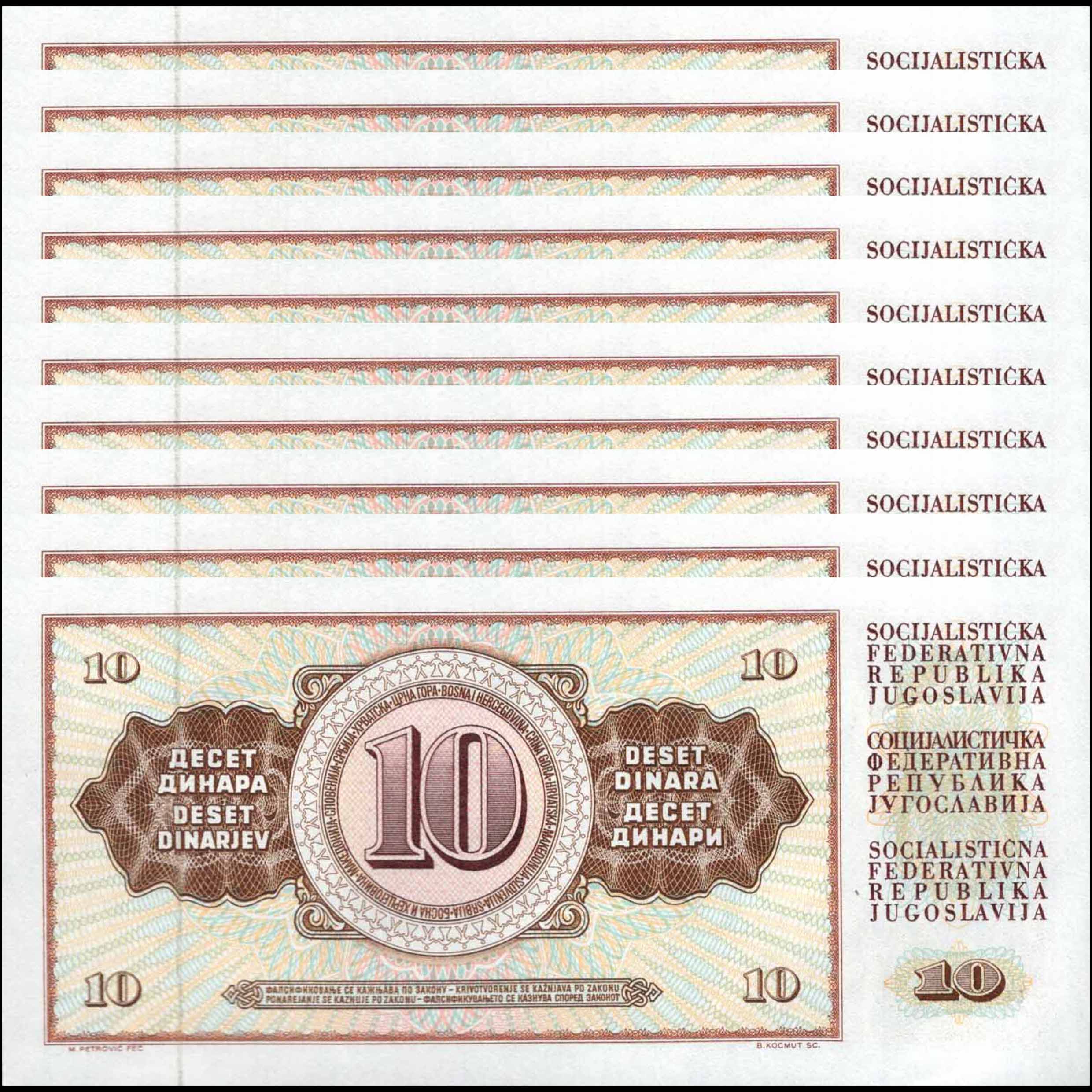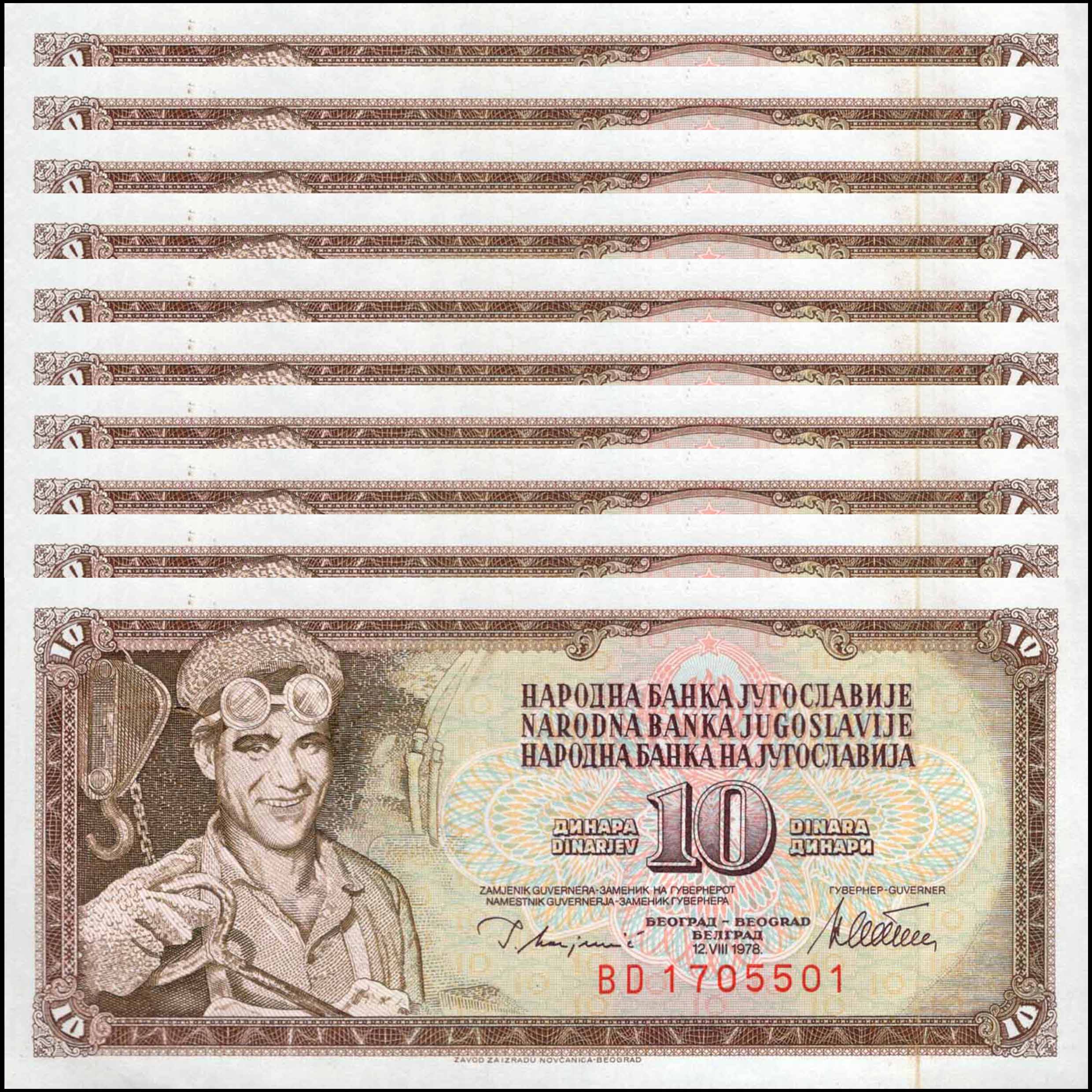 Yugoslavia - 10 Dinara 1978 - Pick # 87a - Set 10 PCS