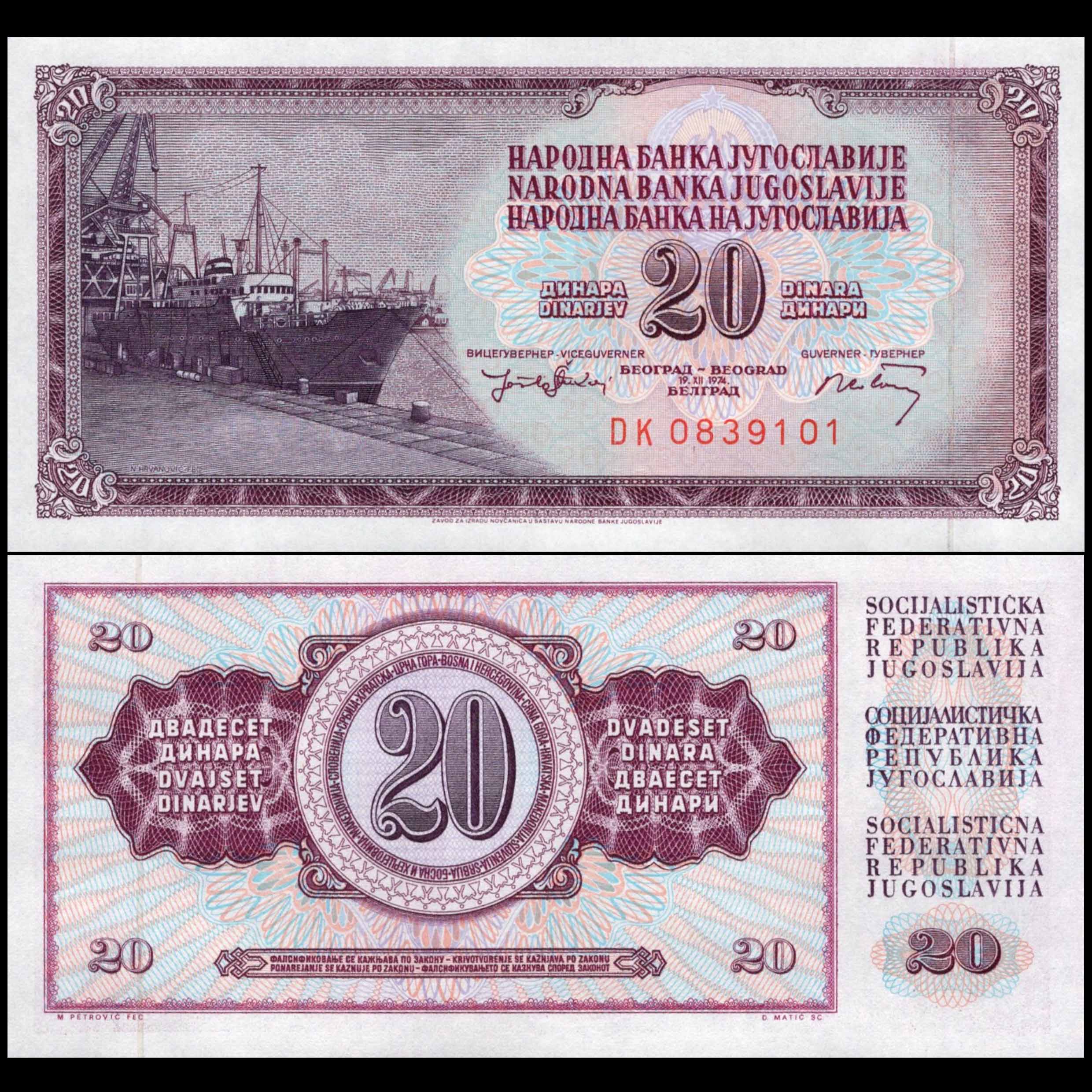 Yugoslavia - 20 Dinara 1974 - Pick # 85
