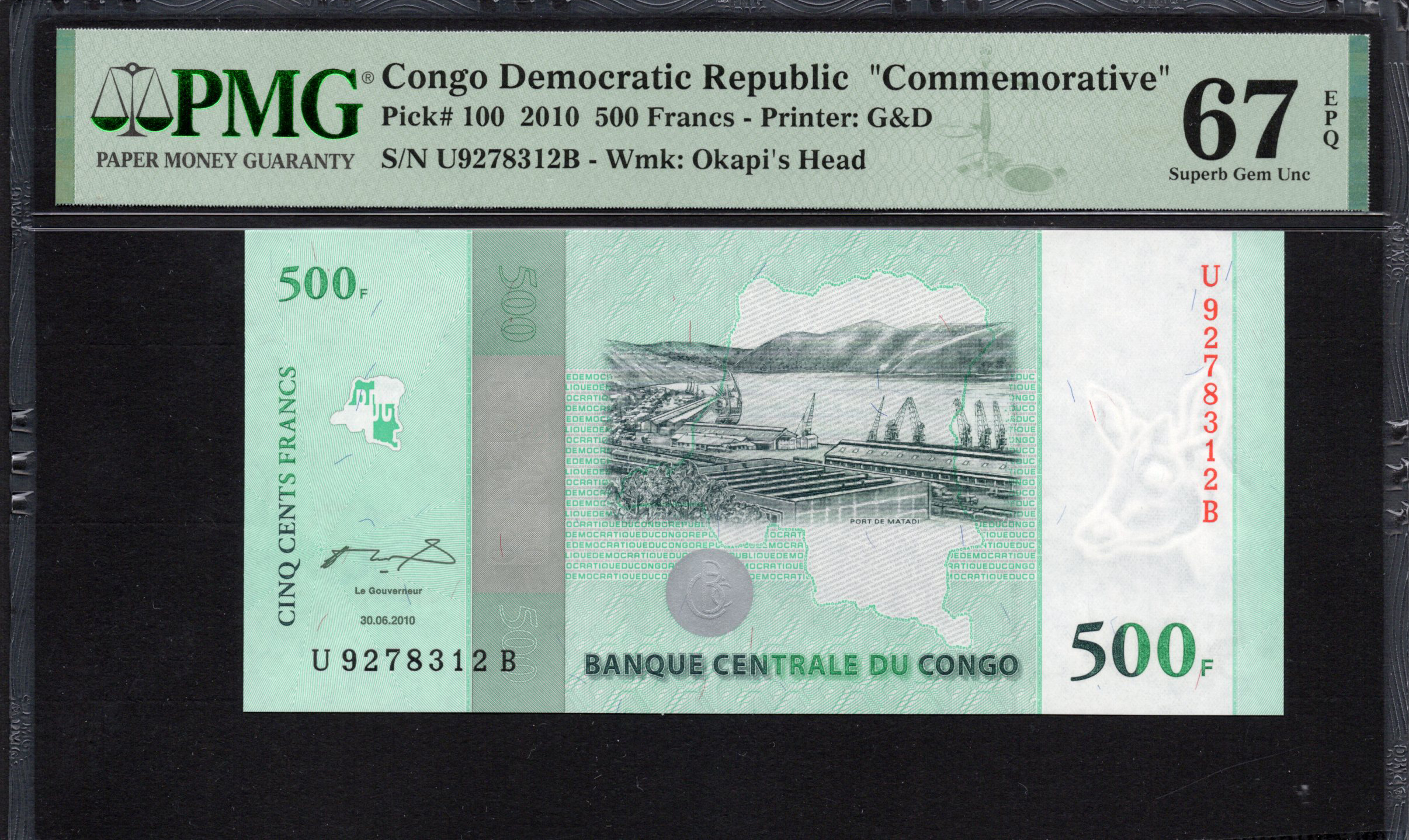 Congo Democratic Republic - 500 Francs 2010 - Pick # 100 - PMG 67 EPQ