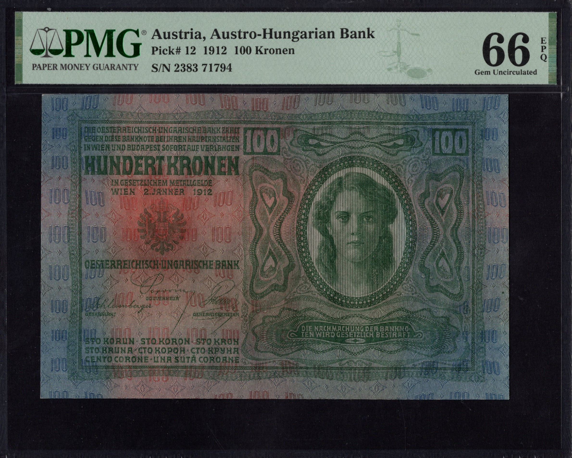 Austria - 100 Kronen 1912 - Pick # 12 - PMG 66 EPQ