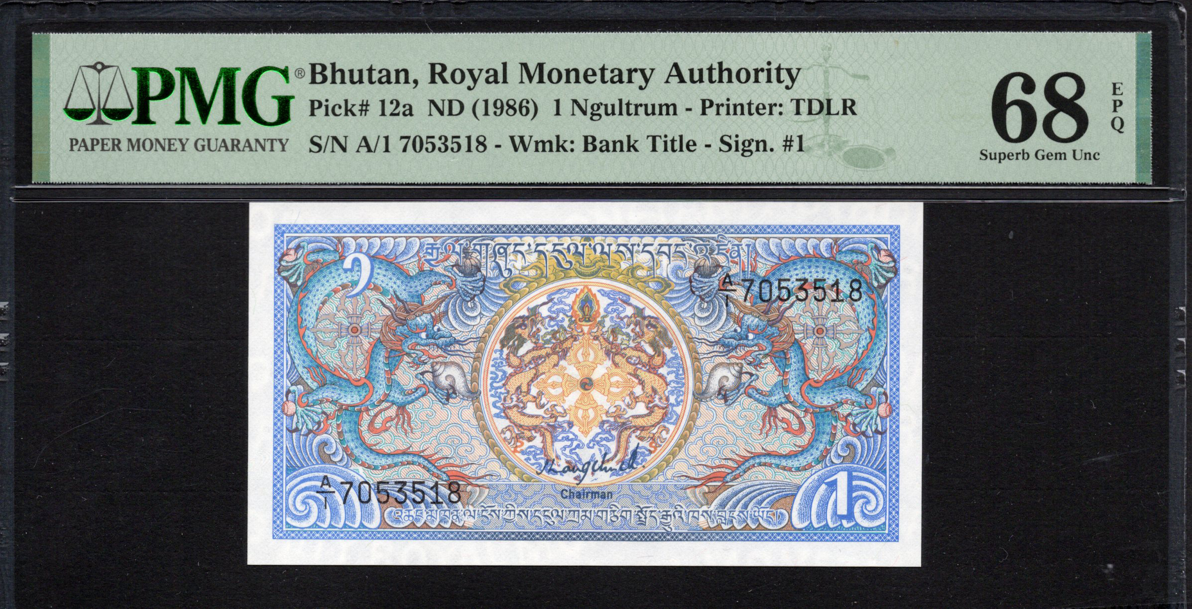 Bhutan - 1 Ngultrum 1986 - Pick # 12a - PMG 68 EPQ