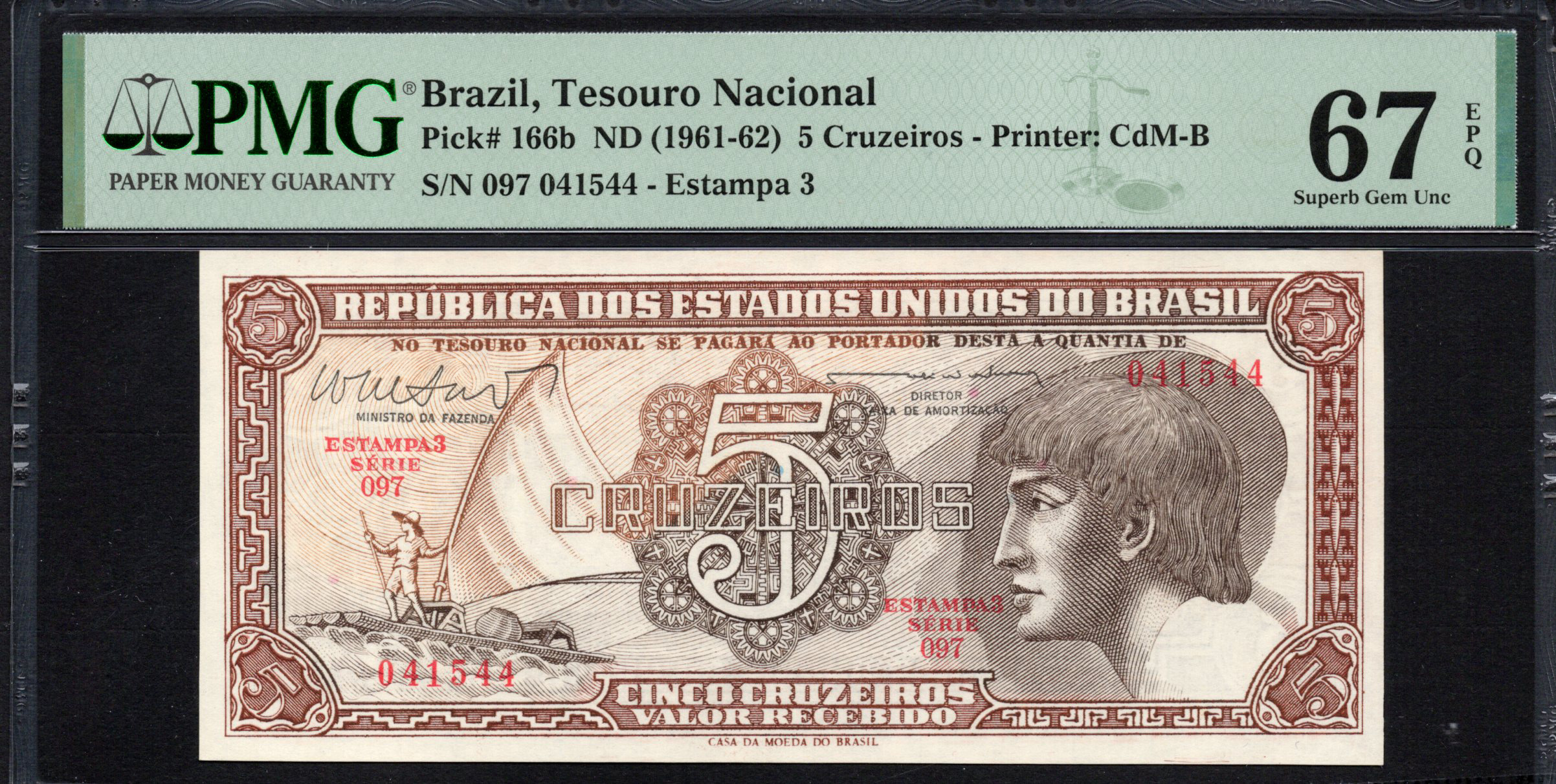 Brazil - 5 Cruzeiros 1961 - Pick # 166b - PMG 67 EPQ