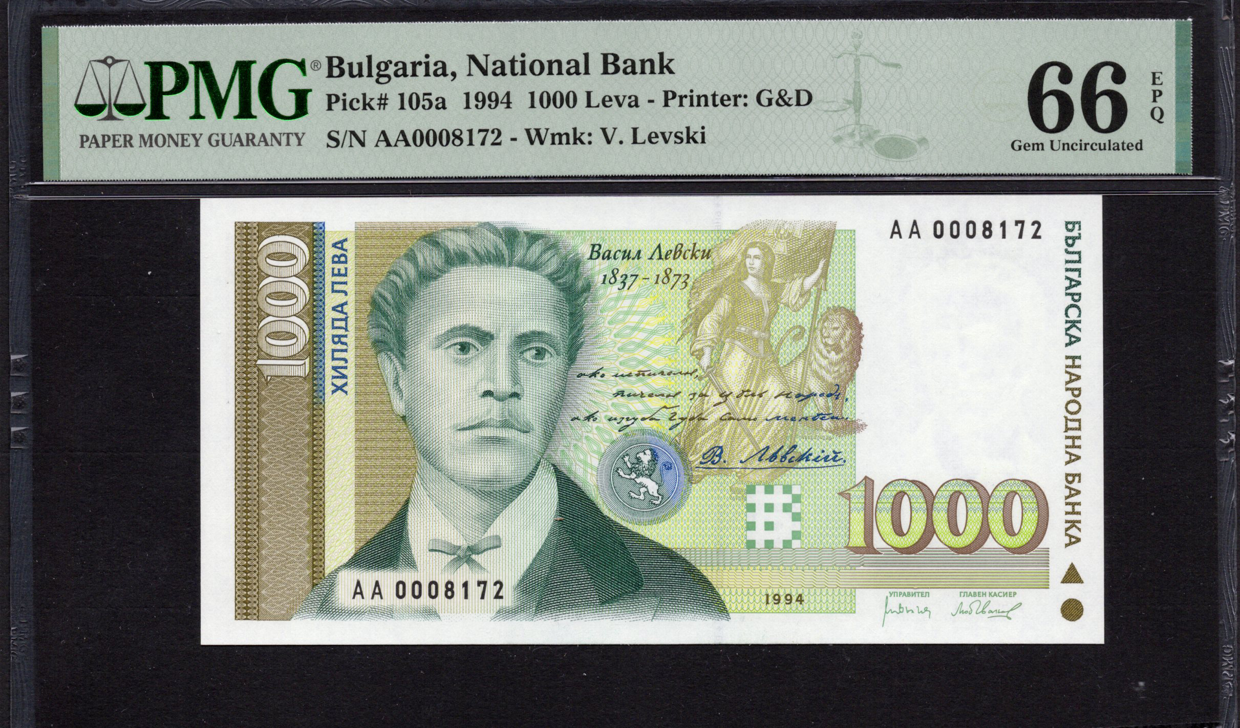 Bulgaria - 1.000 Leva 1994 - Pick # 105a - PMG 66 EPQ