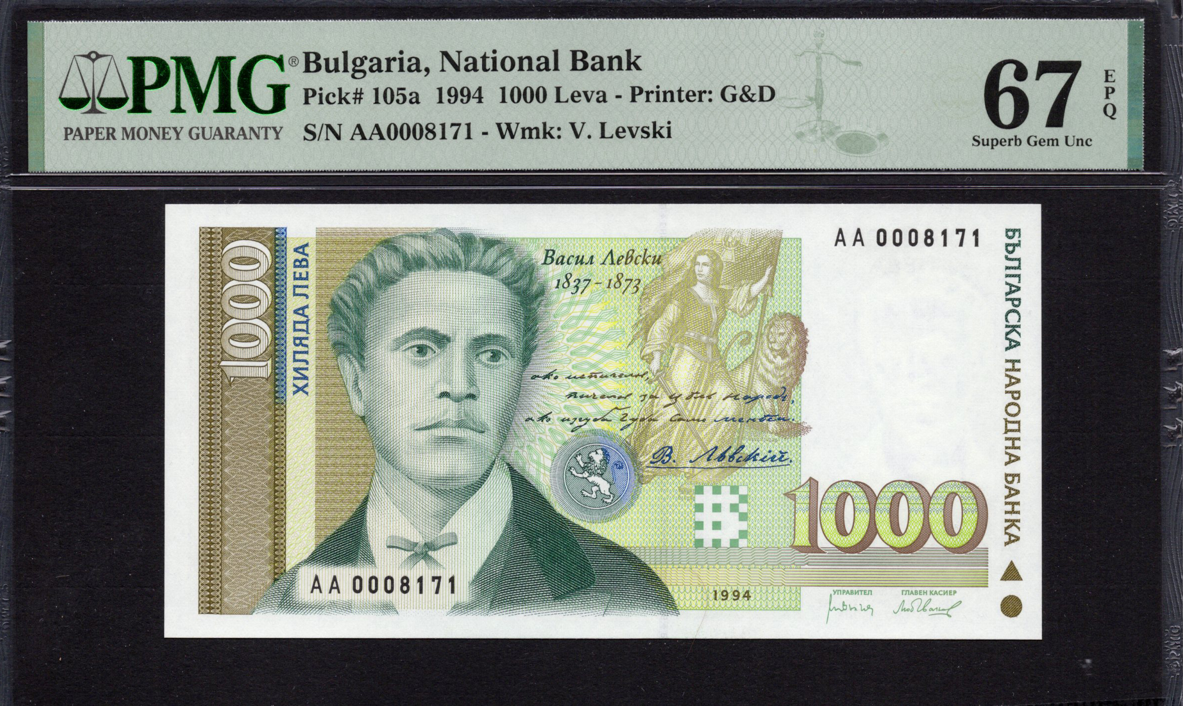 Bulgaria - 1.000 Leva 1994 - Pick # 105a - PMG 67 EPQ