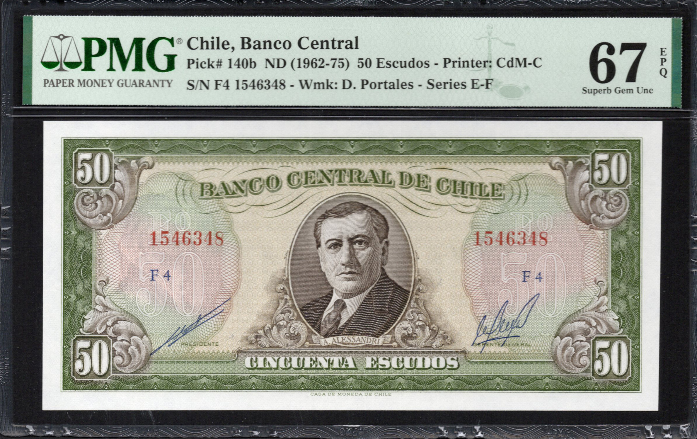 Chile - 50 Escudos 1962 - Pick # 140b - PMG 67 EPQ