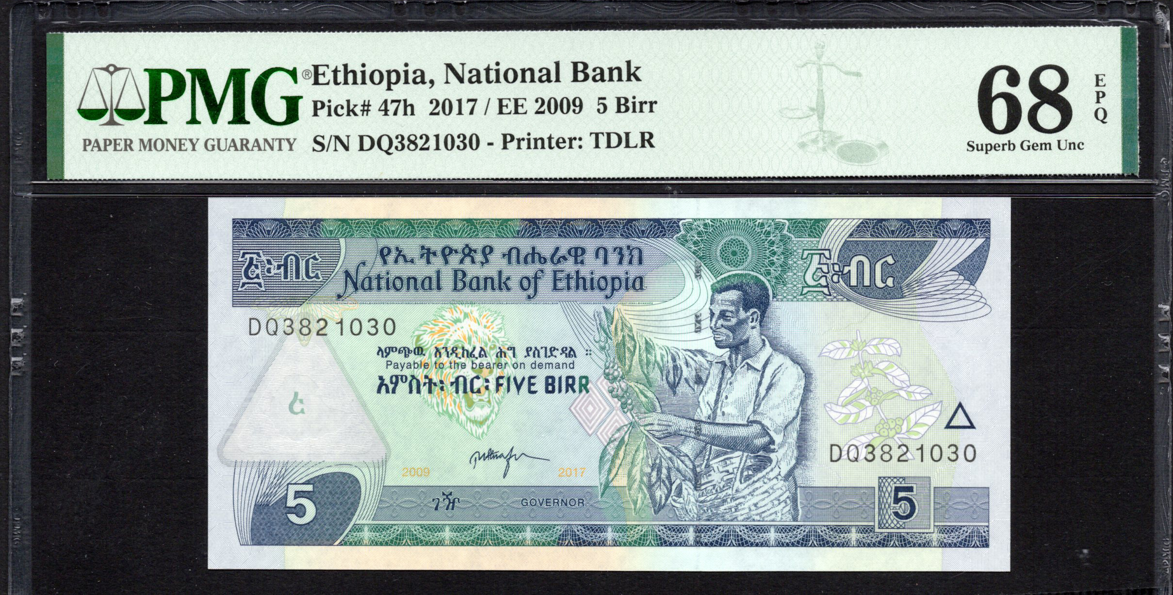 Ethiopia - 5 Birr 2017 - Pick # 47h - PMG 68 EPQ