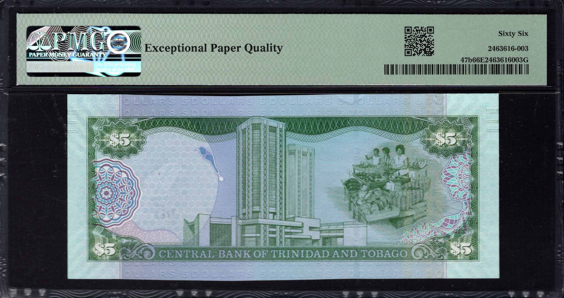 Het 5-dollar bankbiljet van Trinidad en Tobago toont ingewikkelde ontwerpen en levendige kleuren, die het culturele erfgoed van de regio weerspiegelen. Dit biljet heeft het 'Bird of Paradise' watermerk, een symbool van schoonheid en uniekheid, naast het centrale embleem dat het erfgoed van de natie vertegenwoordigt. Het bankbiljet dient niet alleen als ruilmiddel, maar ook als een kunstwerk.