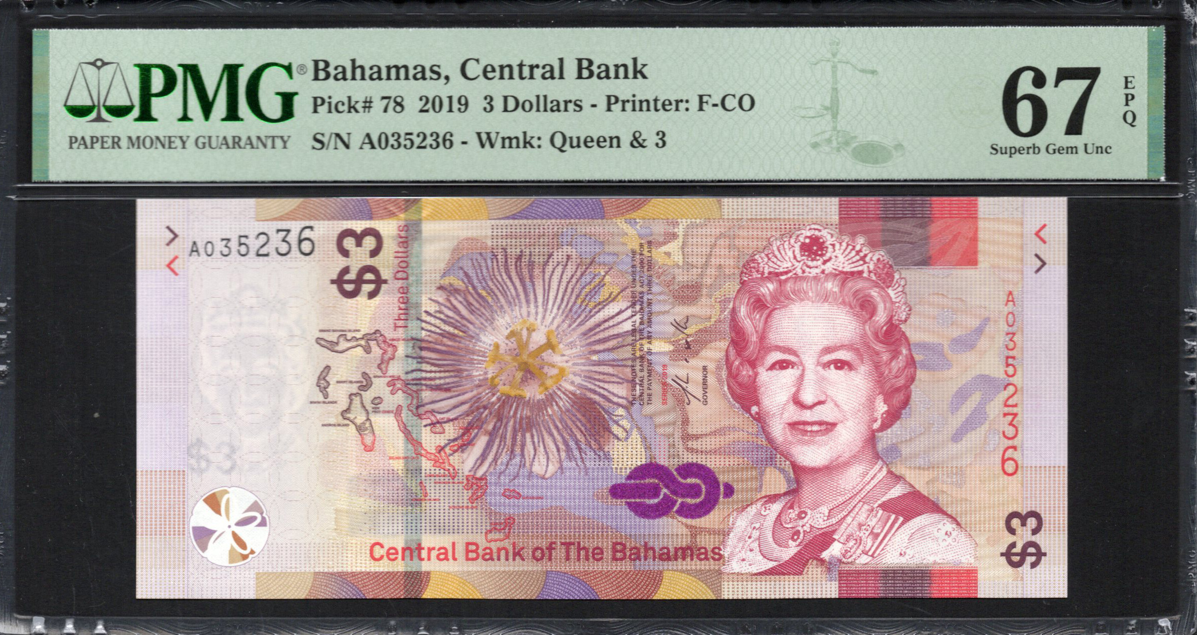 Het $3 bankbiljet van de Bahamas heeft levendige kleuren en complexe ontwerpen, waardoor het een uniek stuk valuta is. Het toont Koningin Elizabeth II, samen met een prachtige afbeelding van een lokale bloem, die de natuurlijke schoonheid van de Bahamas symboliseert. Het bankbiljet bevat verschillende beveiligingskenmerken om vervalsing te voorkomen, zoals een watermerk en micro-opdruk. Al met al dient het niet alleen als wettelijk betaalmiddel, maar ook als een bewijs van de culturele erfgoed van de Bahamas.