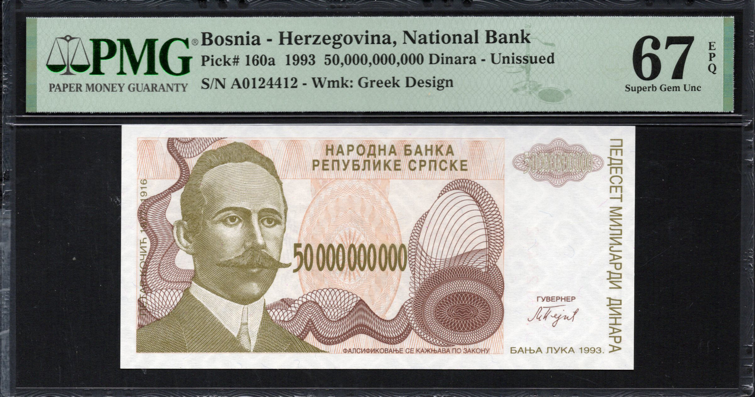 Het bankbiljet van Bosniƫ en Herzegovina heeft een opvallend ontwerp dat de rijke culturele erfgoed van de regio benadrukt. Dit niet-uitgegeven 50.000.000 dinar biljet toont ingewikkelde elementen die typerend zijn voor valuta in het gebied, inclusief een portret van een opmerkelijke historische figuur, vergezeld van decoratieve patronen en kleuren die de unieke esthetische aantrekkingskracht benadrukken. Het opnemen van veiligheidskenmerken, zoals watermerken en fijne druk, weerspiegelt moderne druktechnieken en het belang van het voorkomen van vervalsing. Dergelijke bankbiljetten dienen niet alleen als ruilmiddel, maar ook als artistieke weergaven van nationale identiteit.
