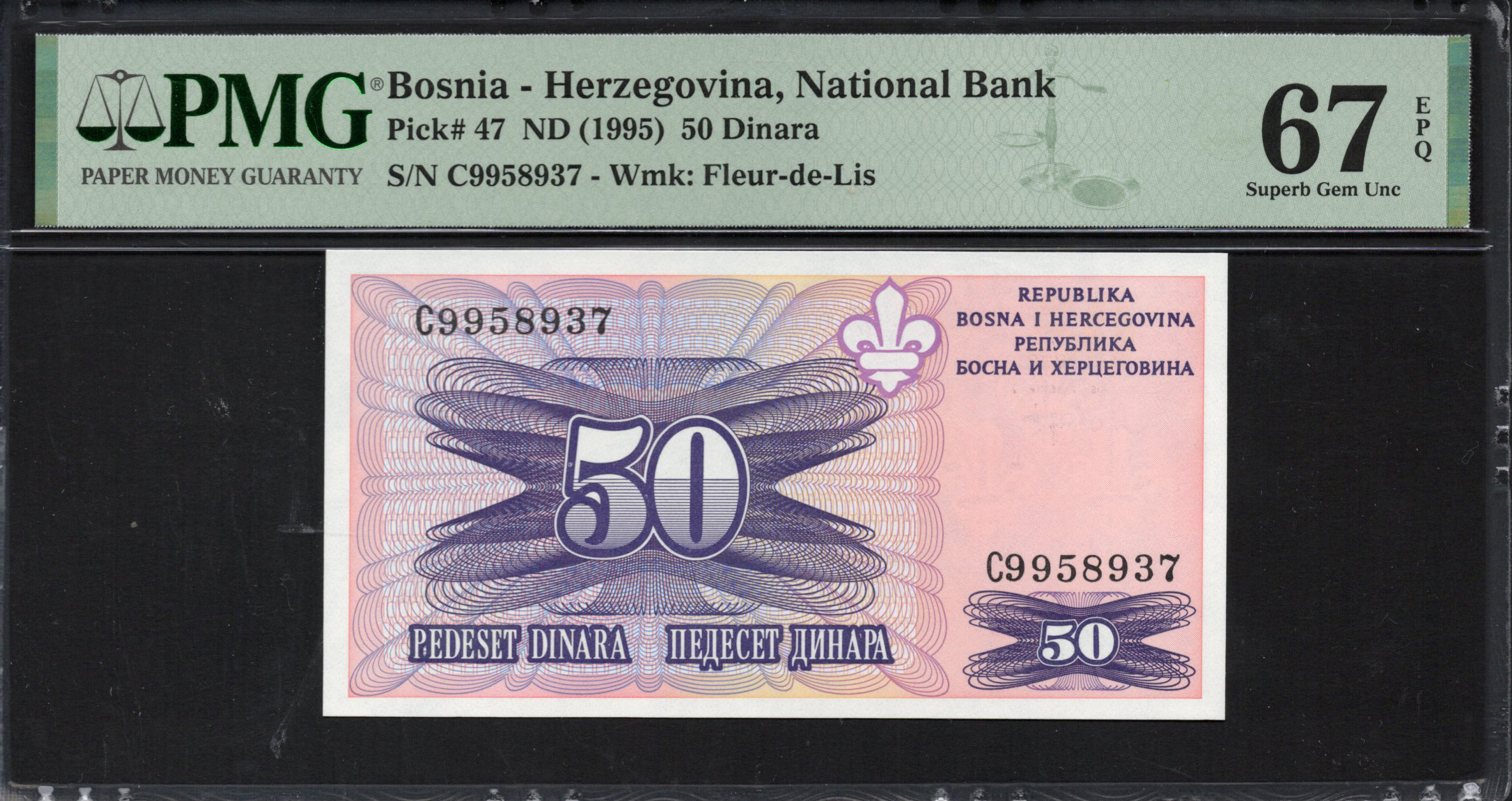 Bosnia and Herzegovina - 50 Dinara 1995 - Pick # 47 - PMG 67 EPQ