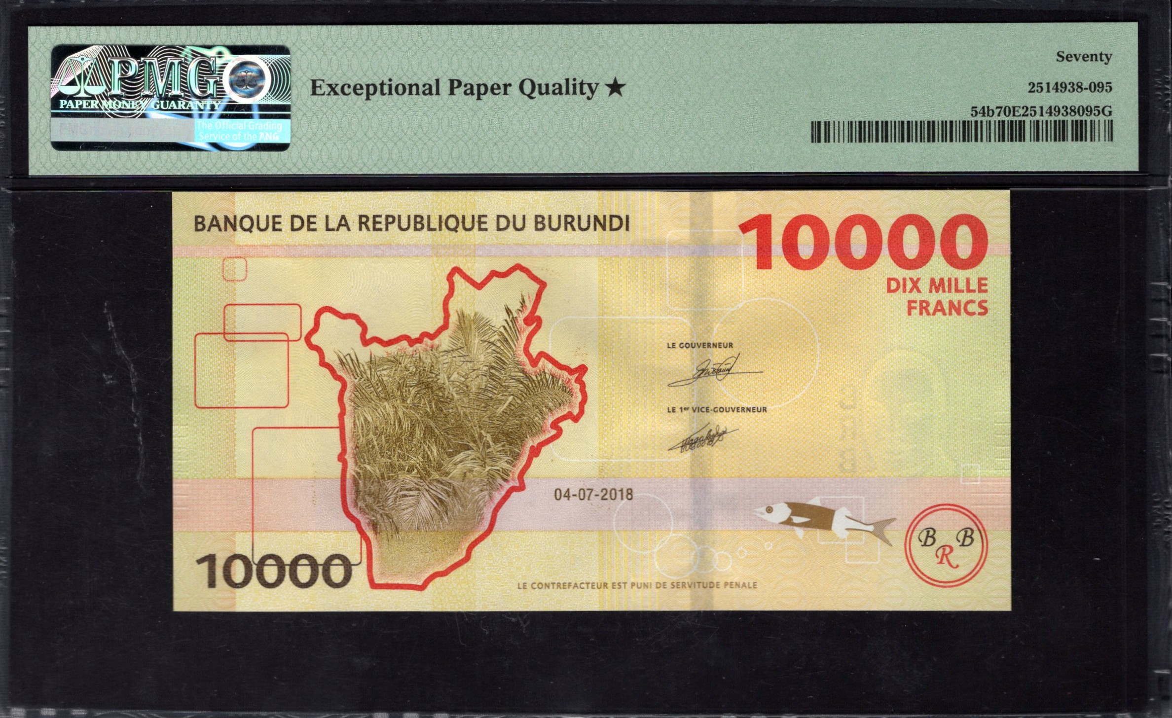De achterzijde van het 10.000 Franques bankbiljet richt zich op culturele representatie, met aanvullende patronen en kleuren die de geest van Burundi oproepen. Het bevat het nationale embleem dat de identiteit en geschiedenis symboliseert. De achtergrond blijft kleurrijk, in overeenstemming met de voorzijde. Diverse veiligheidsmaatregelen zoals hologrammen en transparante elementen kunnen aanwezig zijn, wat het bankbiljet bestand maakt tegen vervalsing. Al met al versterkt deze zijde het artistieke en culturele verhaal van het biljet, waardoor het een opvallend ontwerp is binnen de moderne valuta.